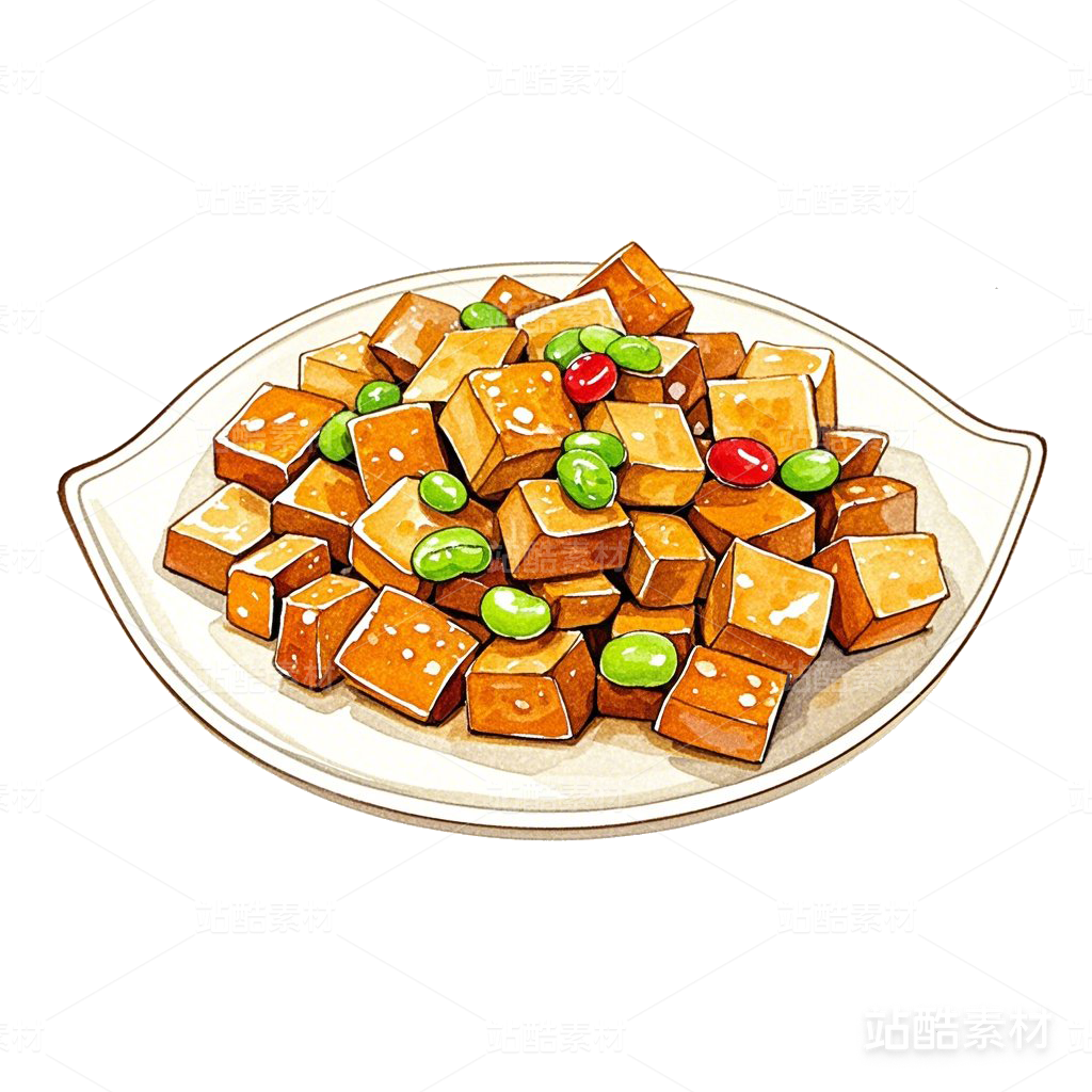 炒豆干水彩手绘美食素材