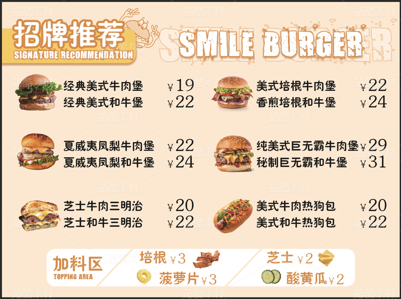 汉堡店菜单设计