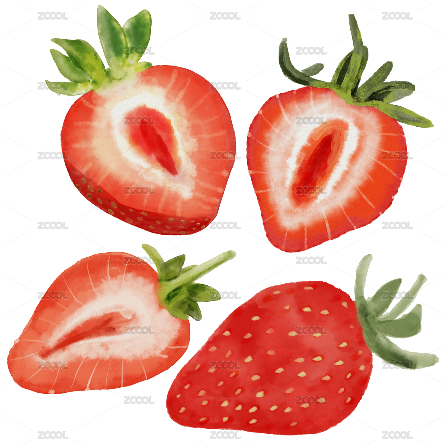 水彩手绘草莓水果创意印花插画图案