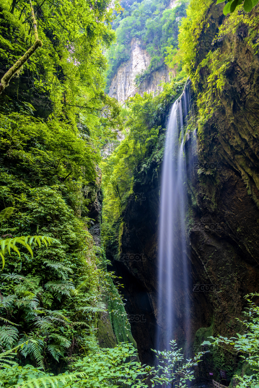 中国重庆武隆龙水峡地缝的瀑布