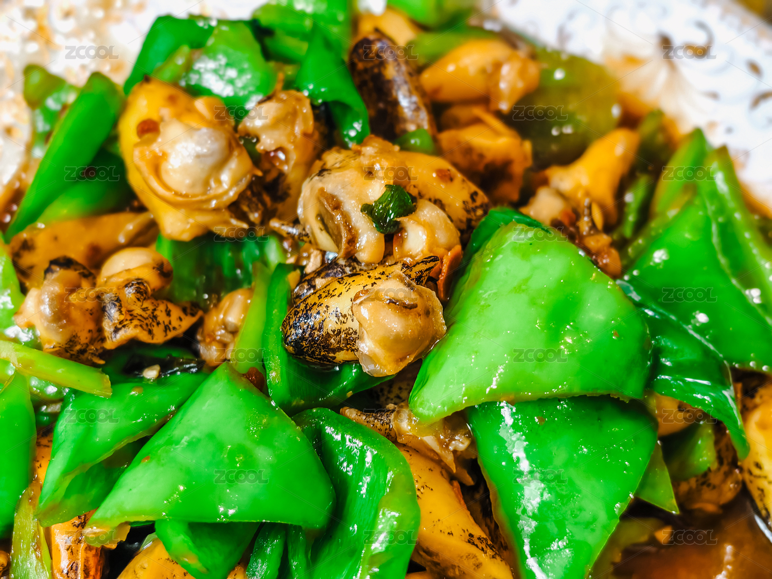 营养美味家常菜辣椒蒜苔炒响螺肉干