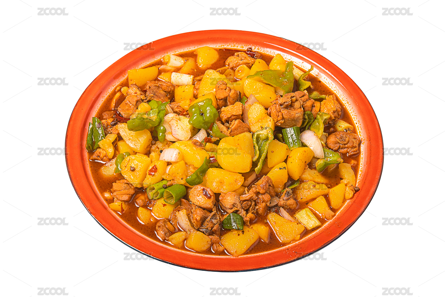 白底上的一盘大盘鸡