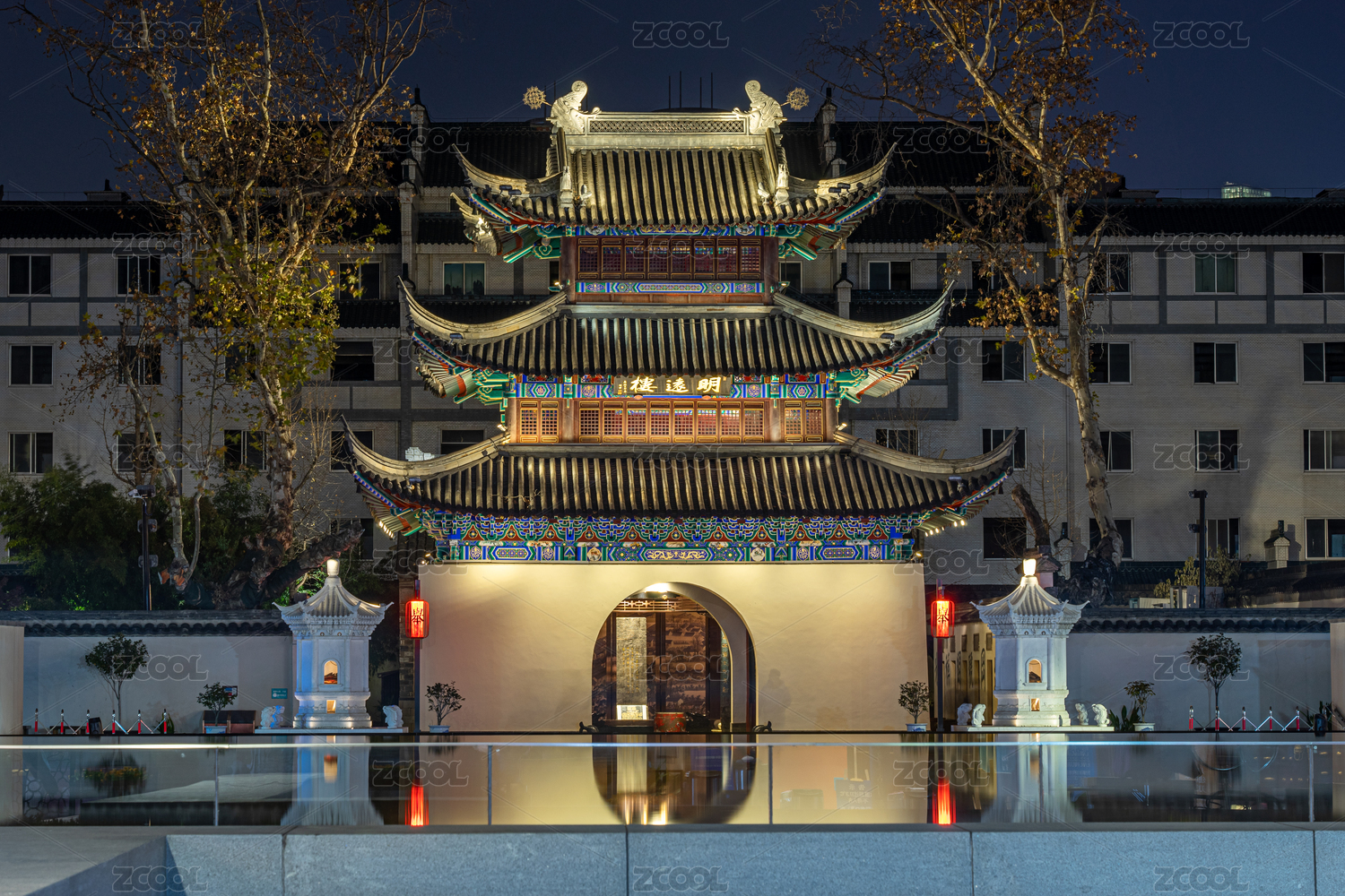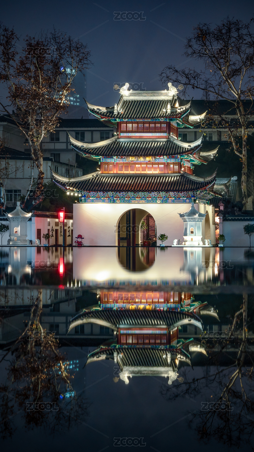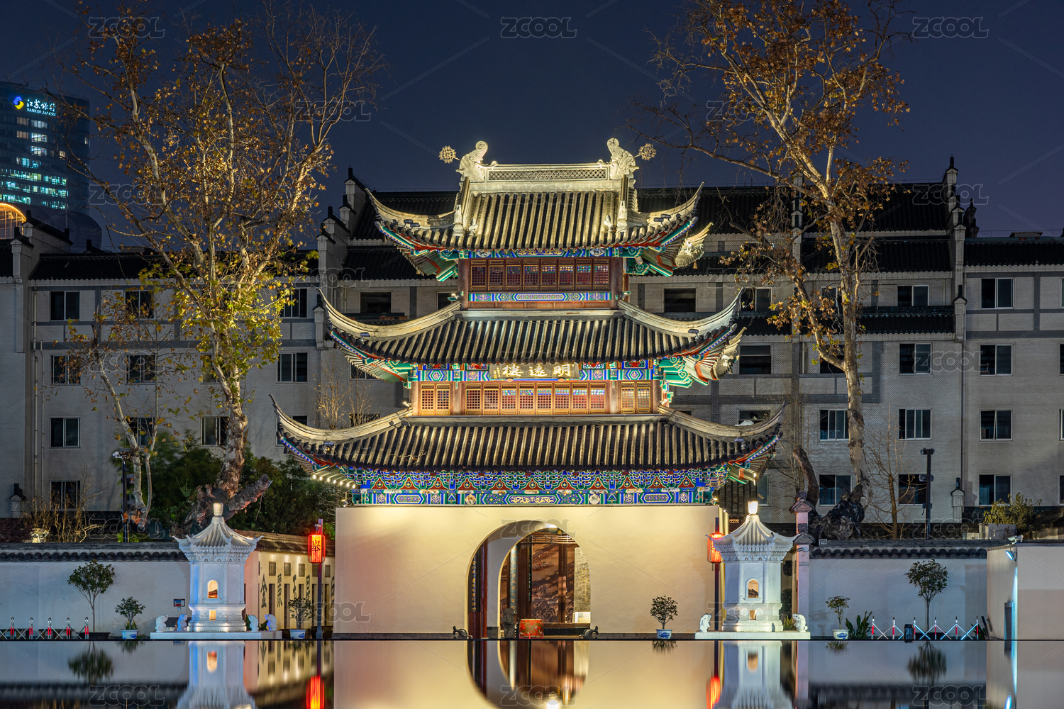 南京夫子庙科举博物馆明远楼倒影