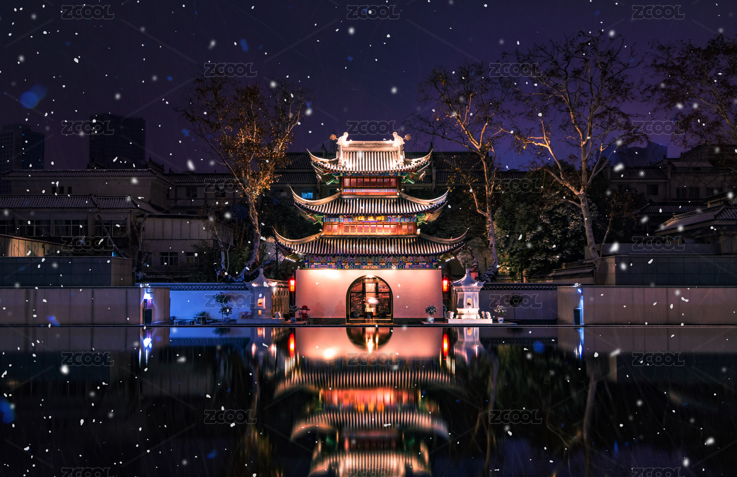 南京夫子庙江南贡院明远楼雪夜