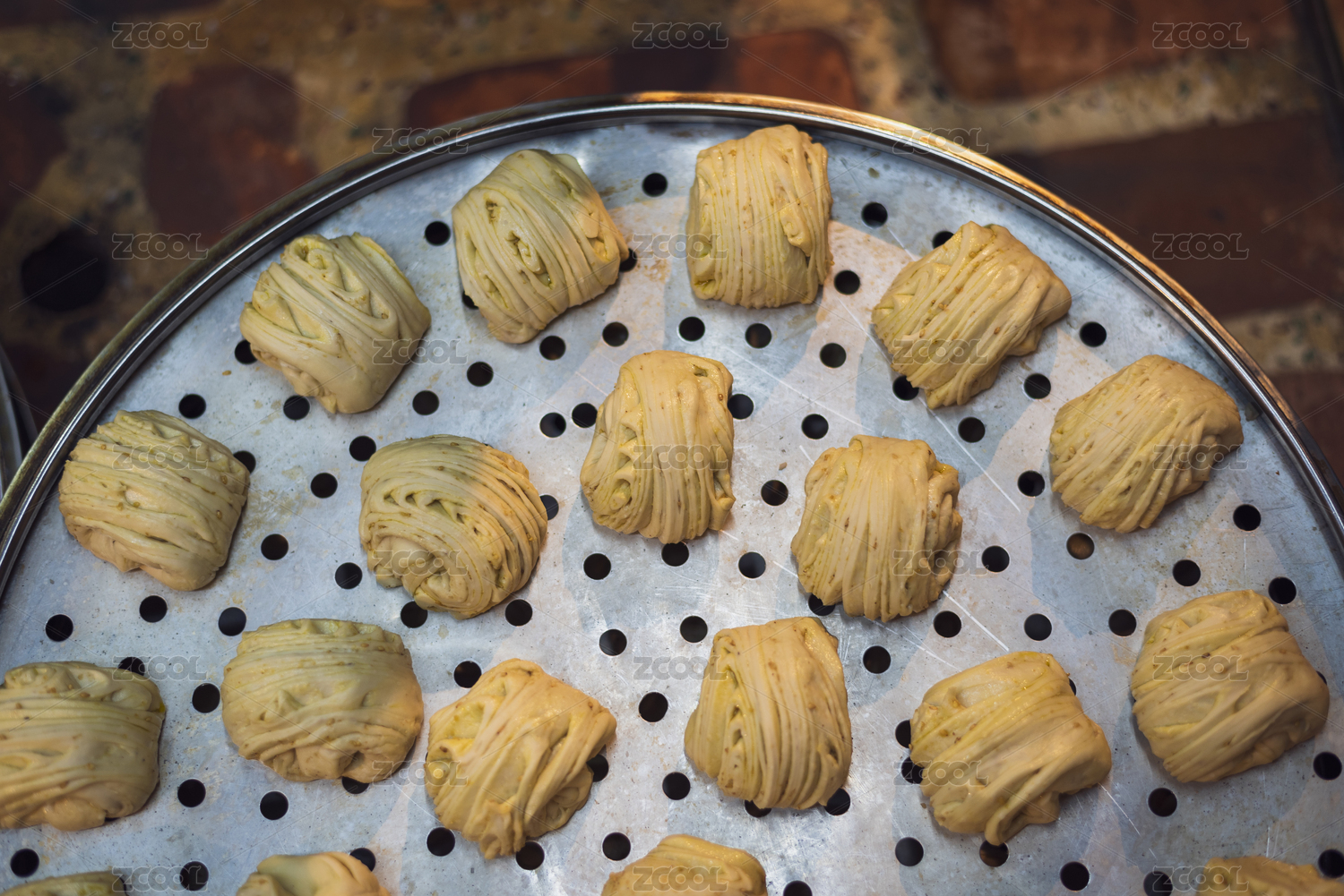 放在蒸屉上的准备蒸的花卷儿