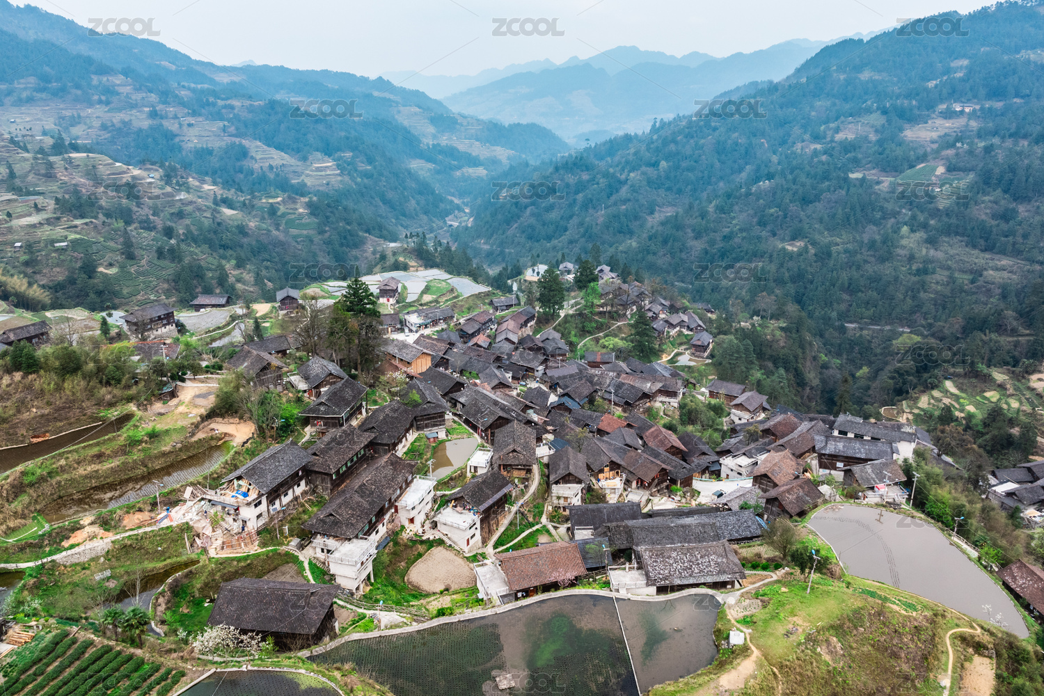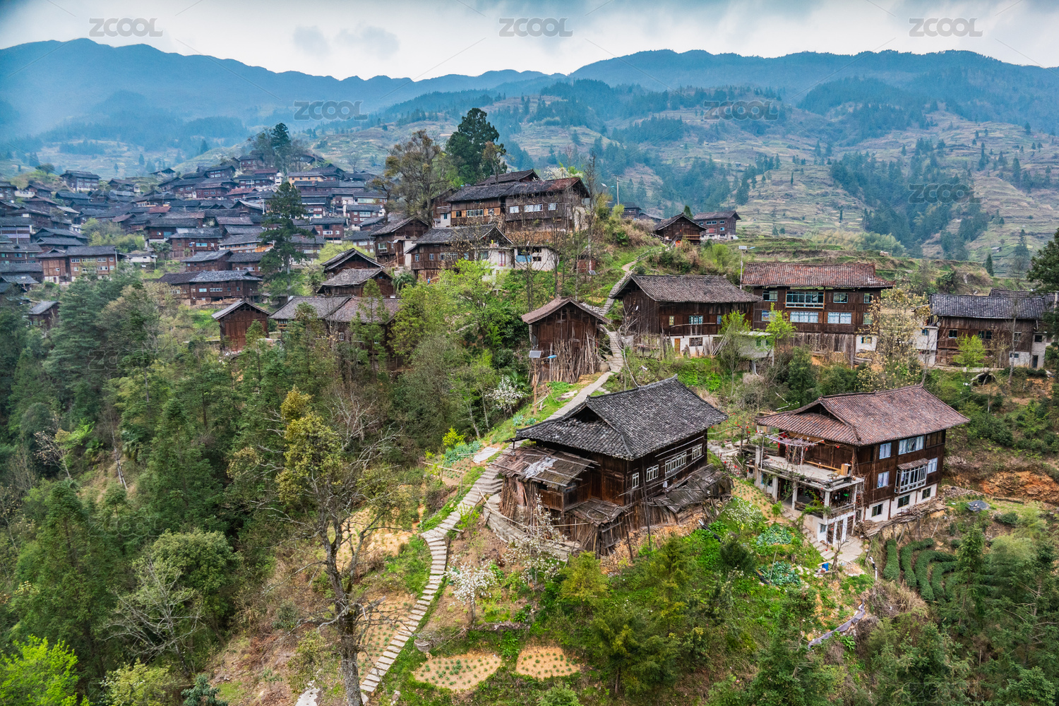 贵州黔东南雷山县雀鸟苗寨建筑风光