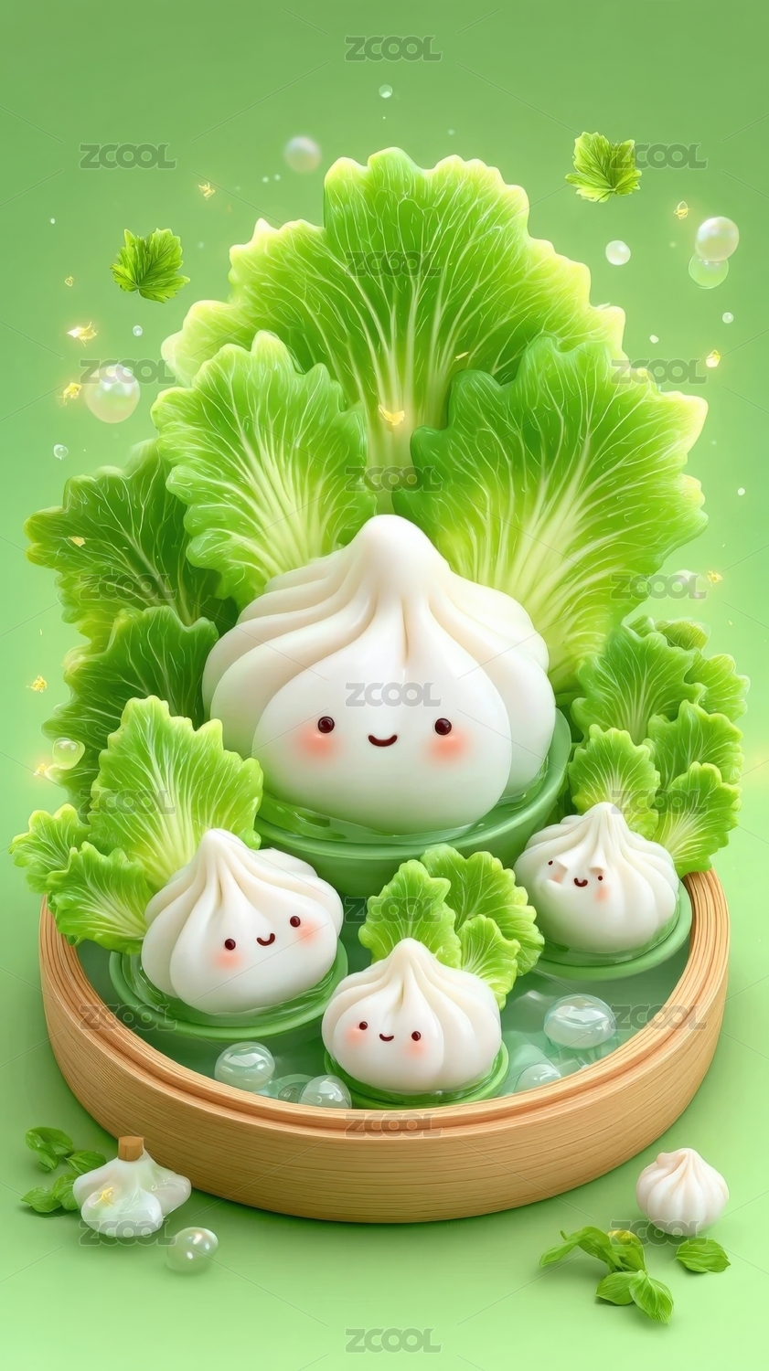 可爱白菜包子蒸笼插画