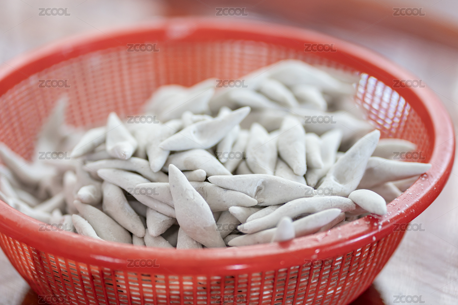 小簸箕里盛装的手工制作的客家小吃芋子粄