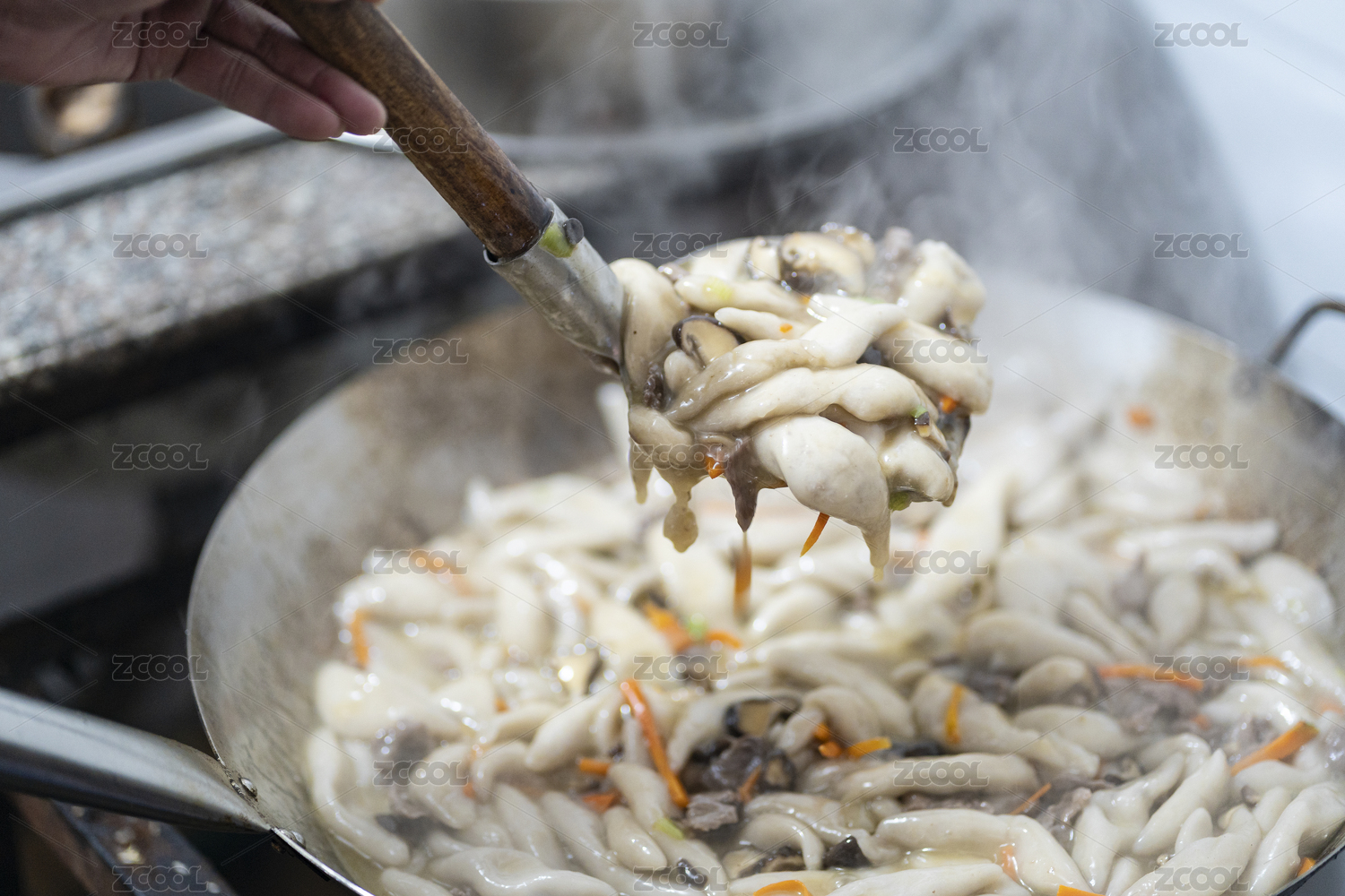 不锈钢锅里煮制的手工制作的客家小吃芋子粄