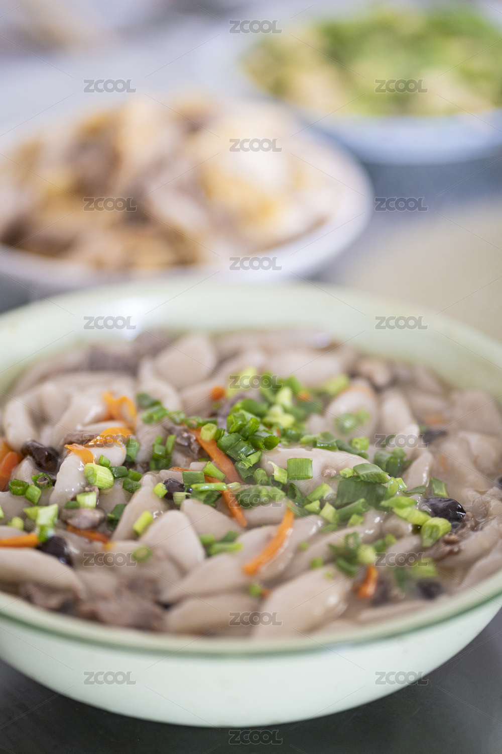 餐桌上瓷盆盛装的客家美食-芋子粄