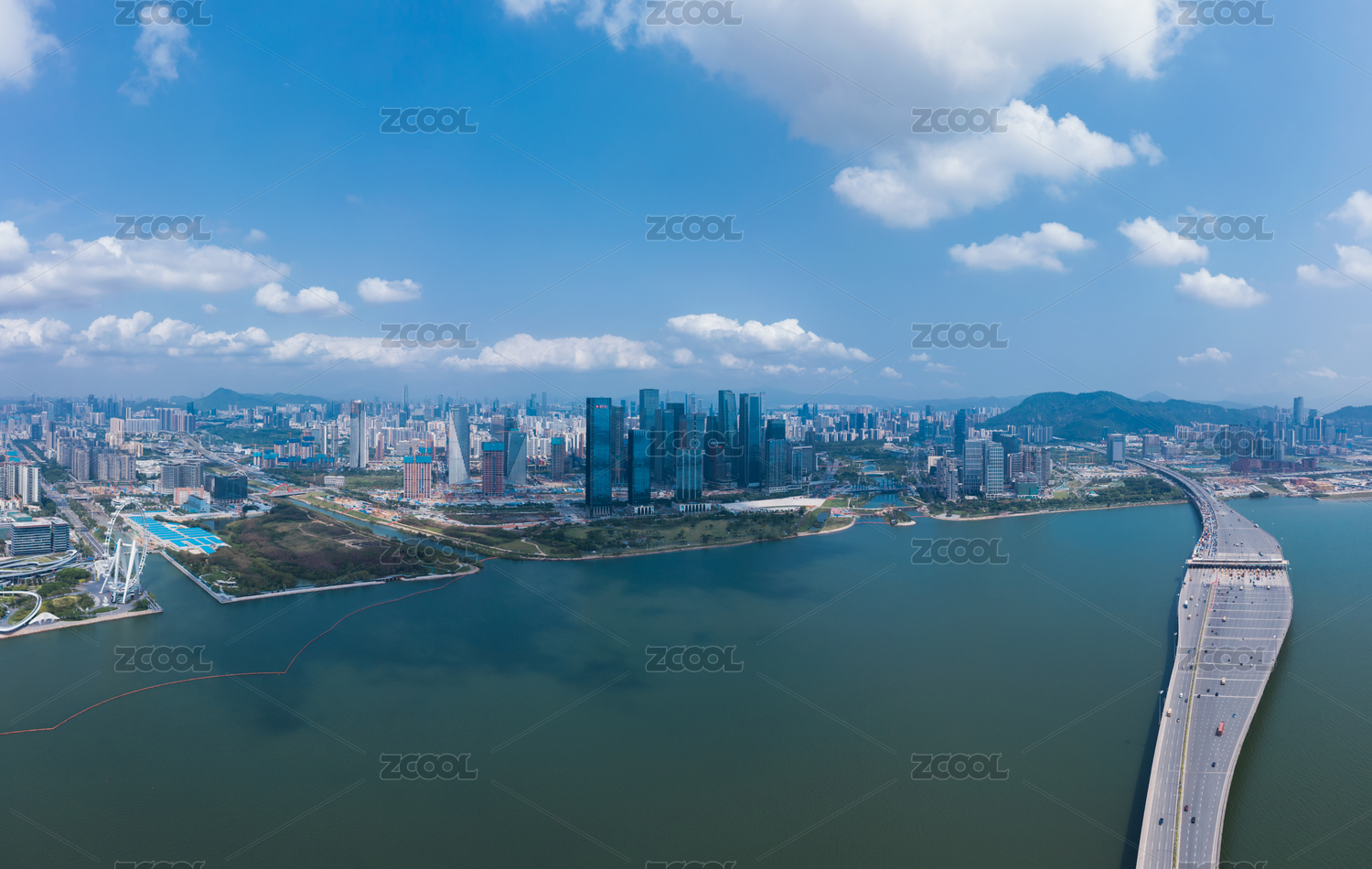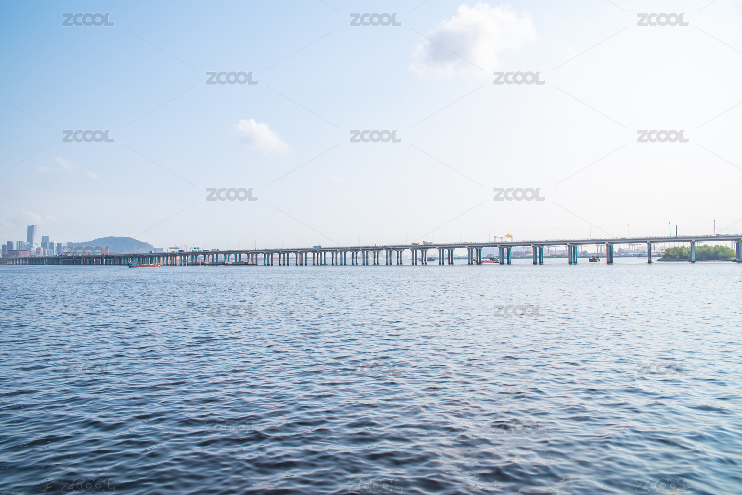 中国深圳宝安区广深沿江高速跨海大桥航拍图