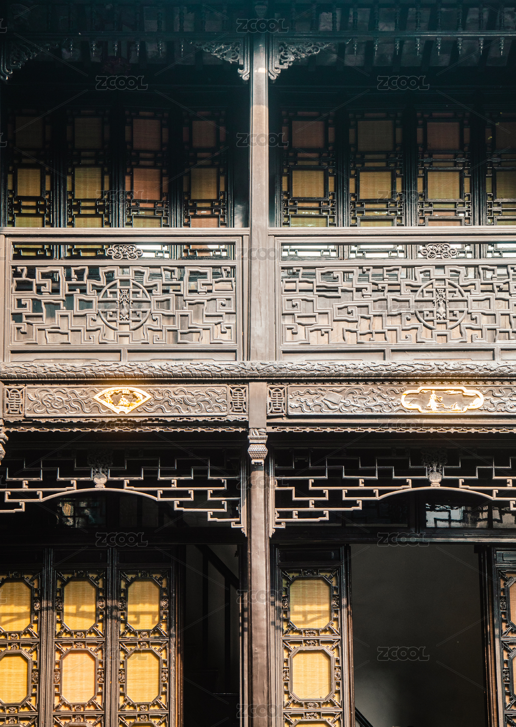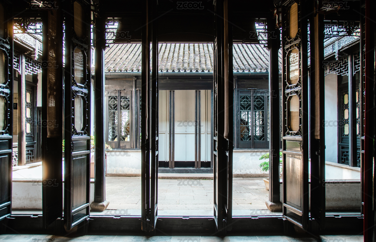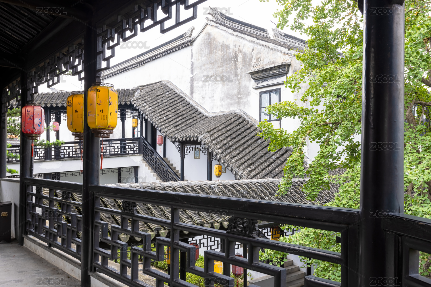 苏州木渎古镇古松园回廊园林建筑景观