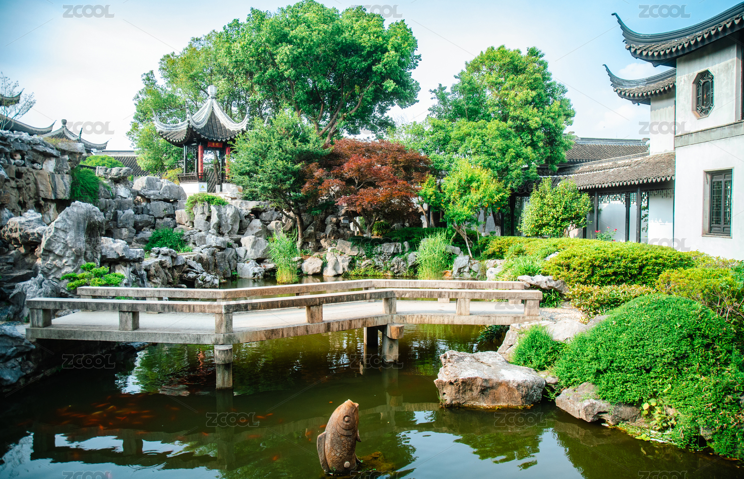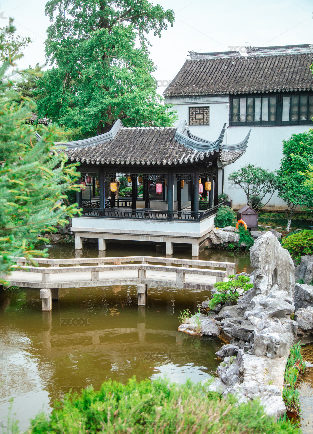 苏州木渎古镇古松园石桥假山池沼