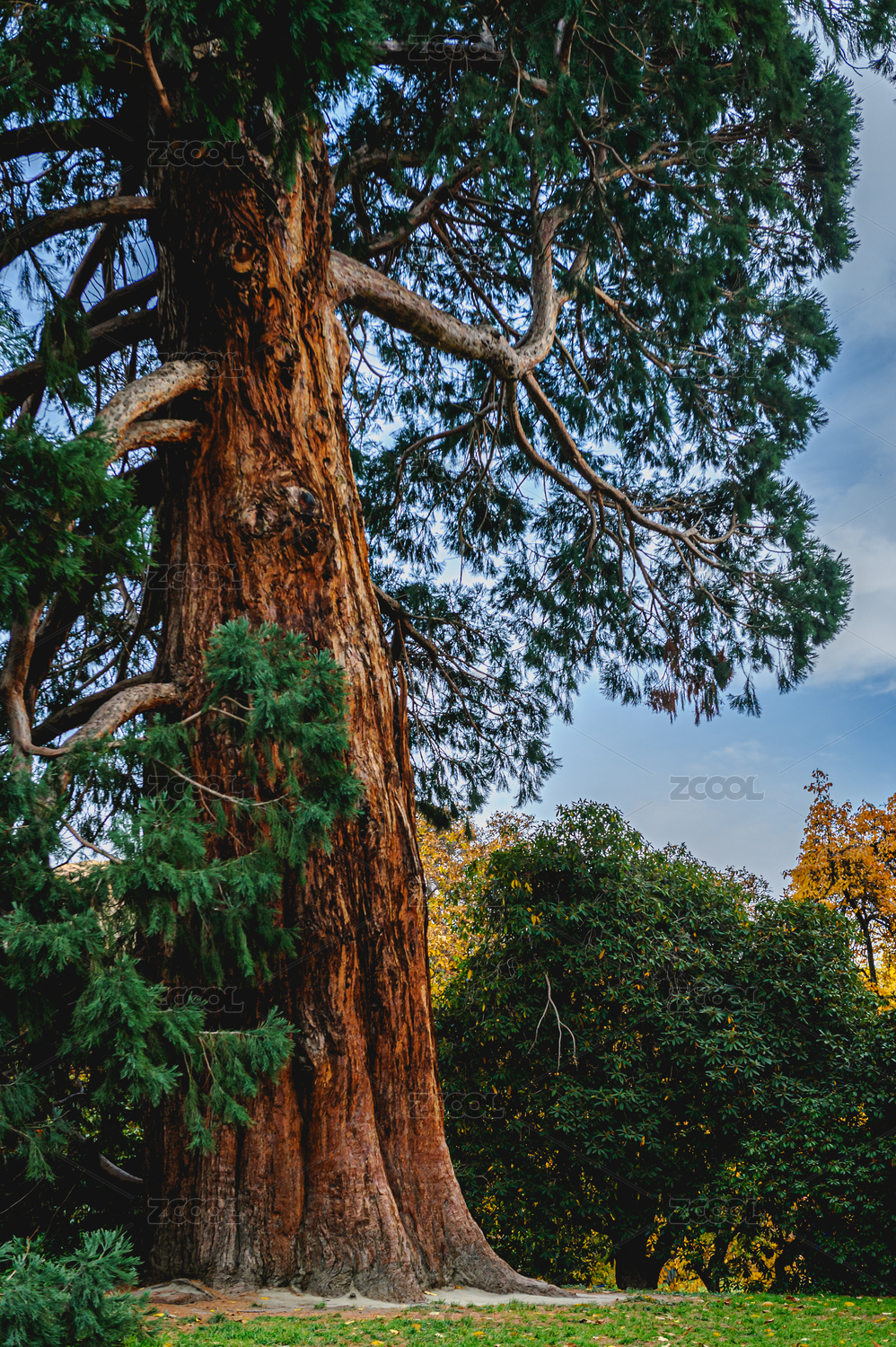 高大松树的树干与树枝