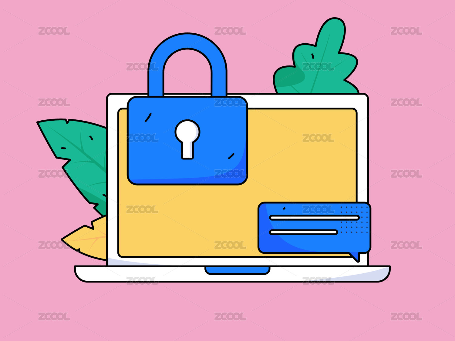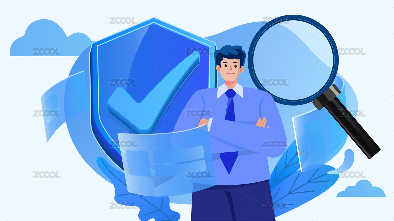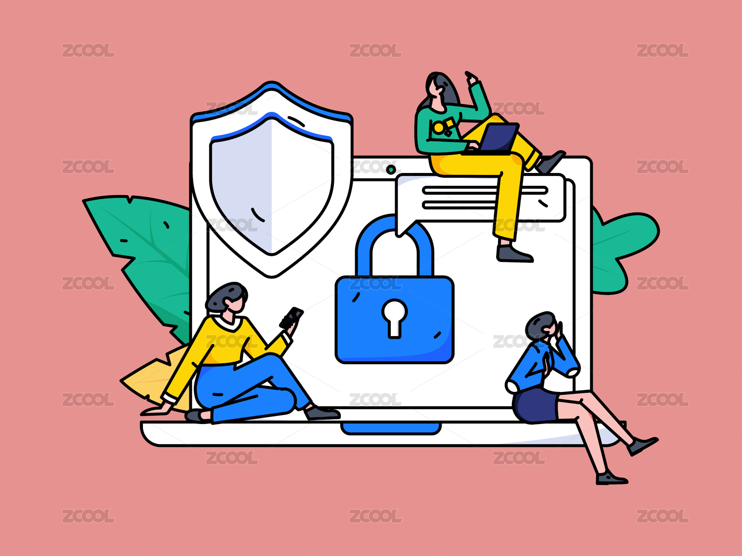 商务网络安全人物扁平矢量概念运营手绘插画