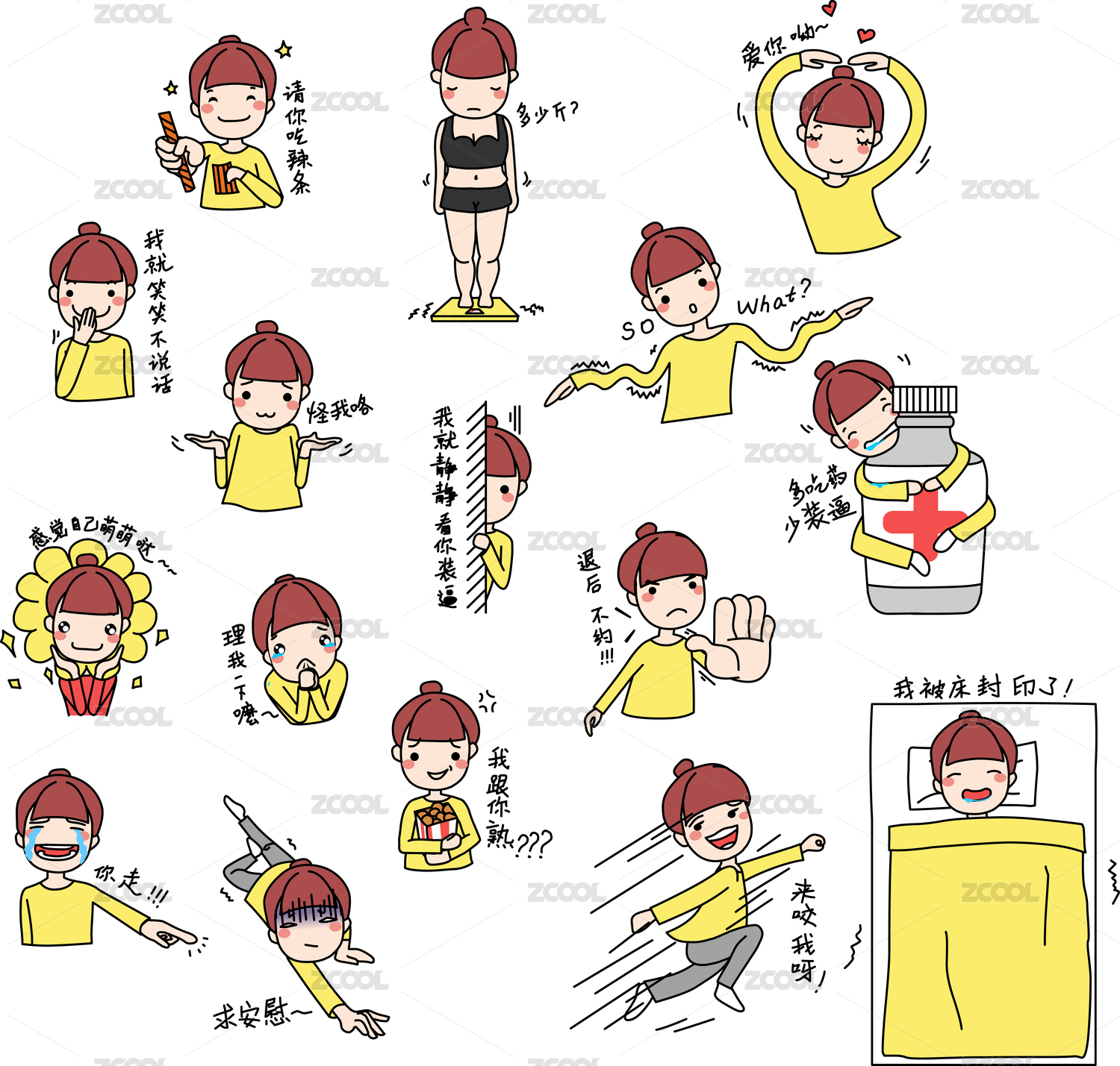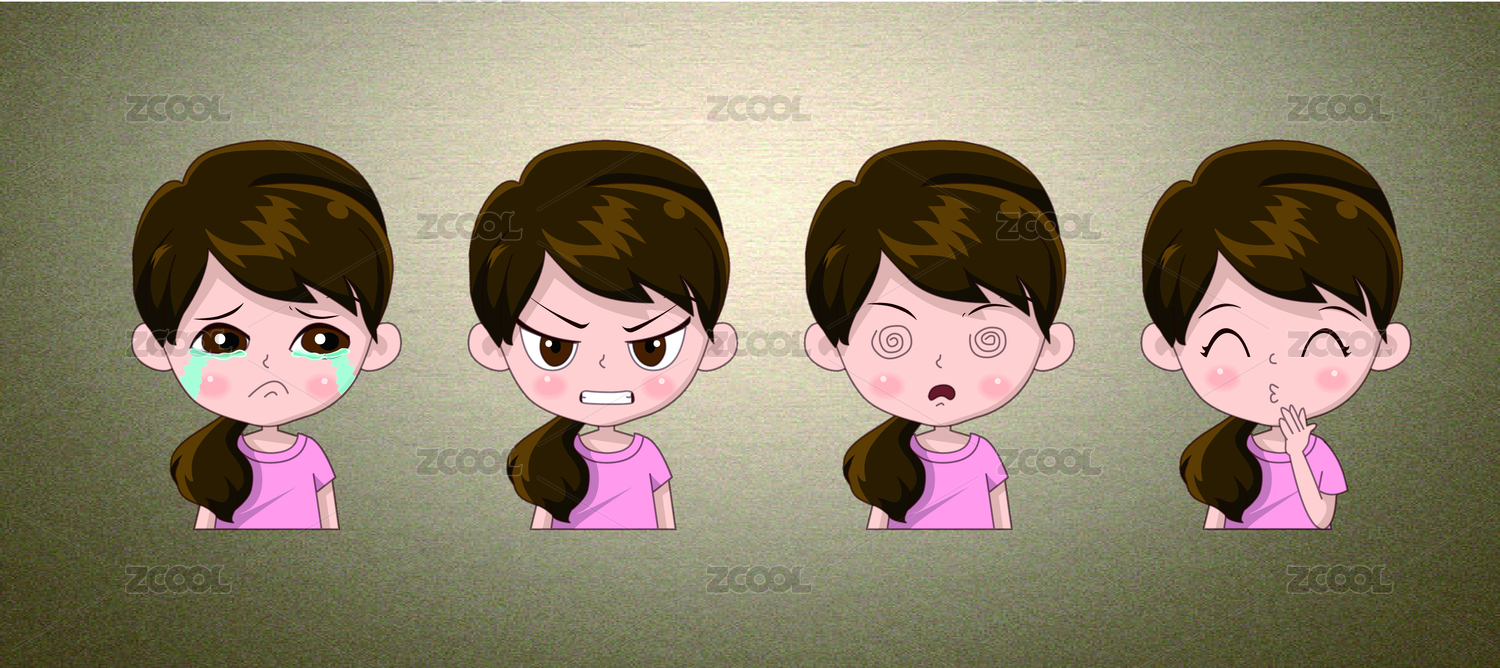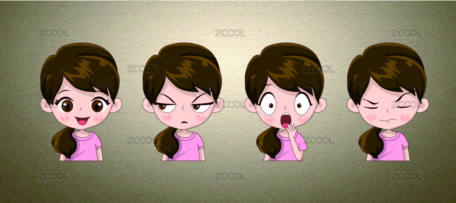 卡通人物设计女孩表情包设计萌萌哒矢量图