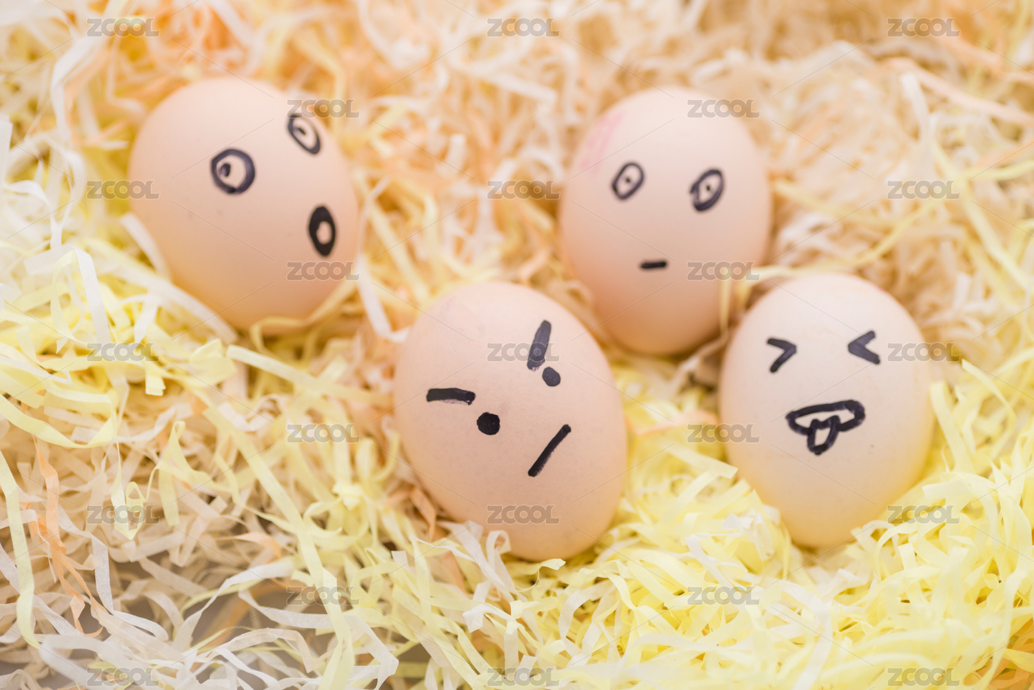 四个带着微表情的鸡蛋