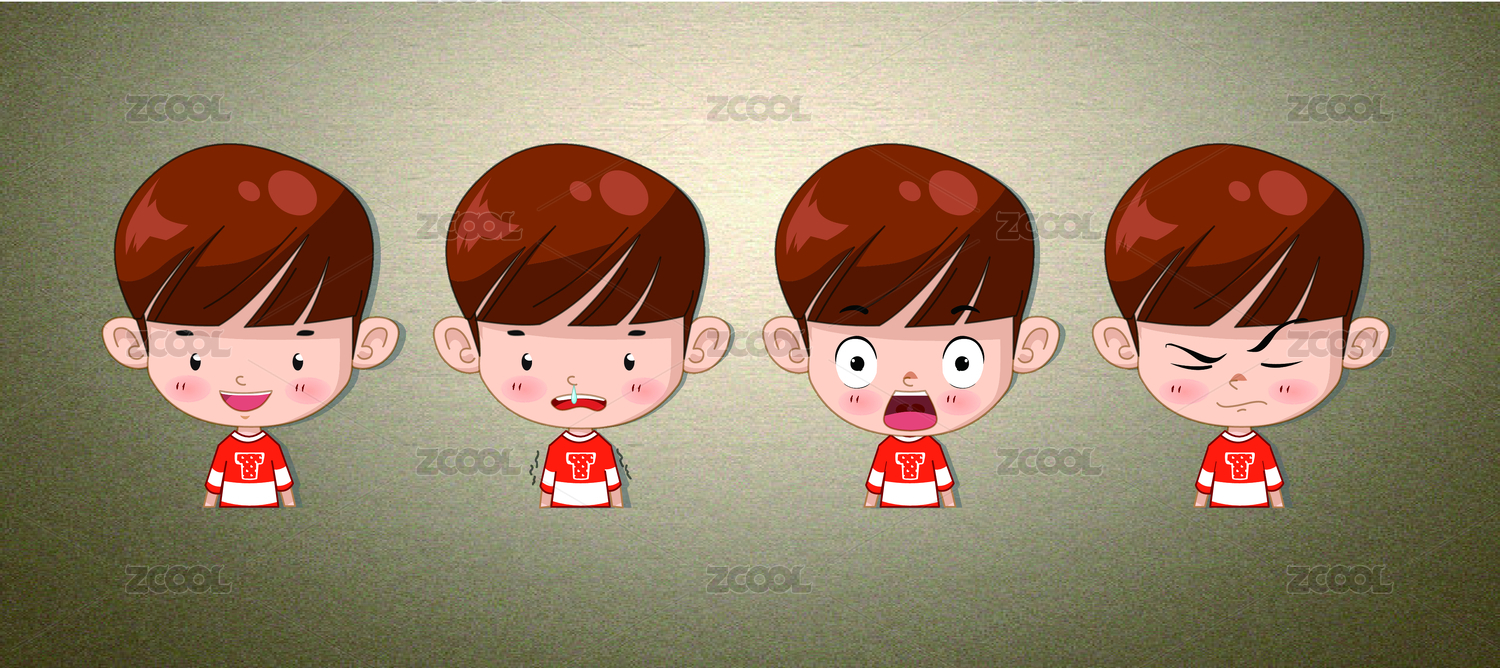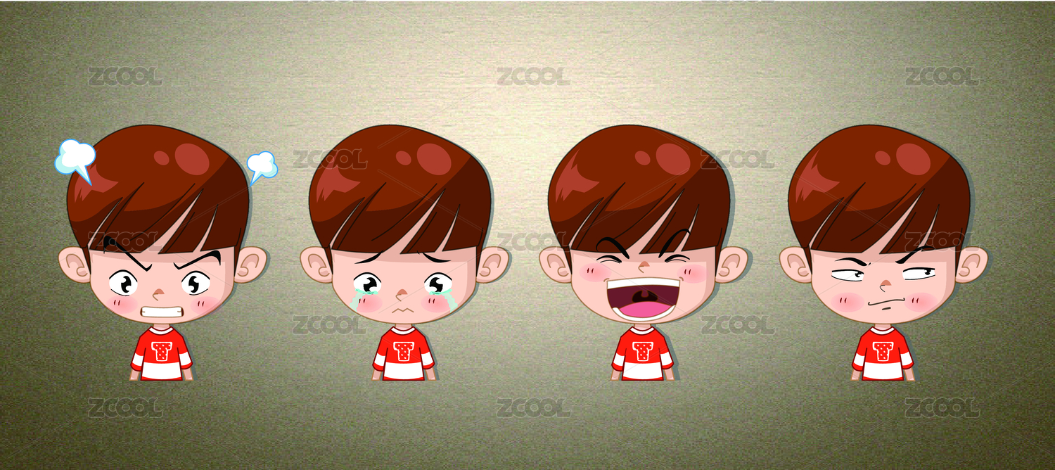 卡通人物表情设计小男孩矢量图