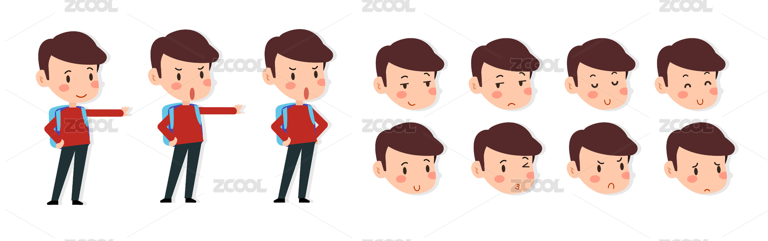 Expression Vector Map男孩学生有趣表情矢量图