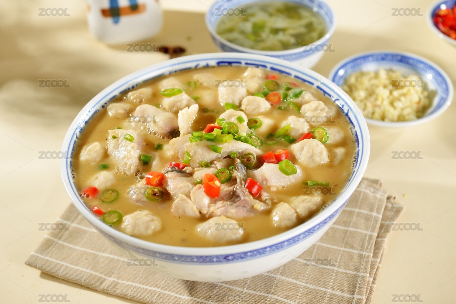 三鲜鱼丸汤盛放在白色大瓷碗里
