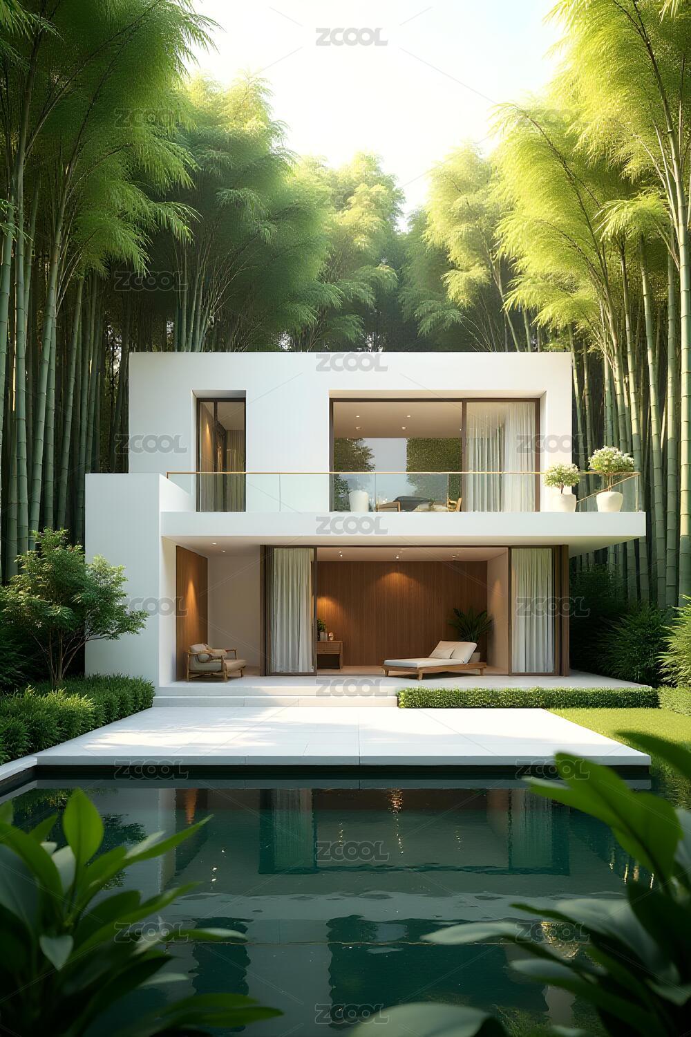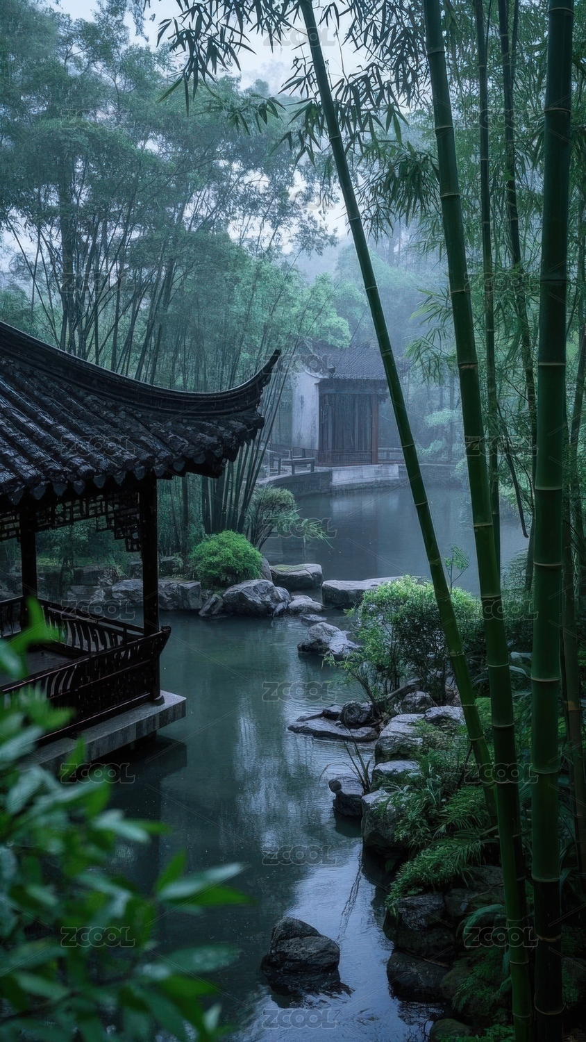 月光下琴声伴萧声在竹林琴瑟和鸣祥云环绕
