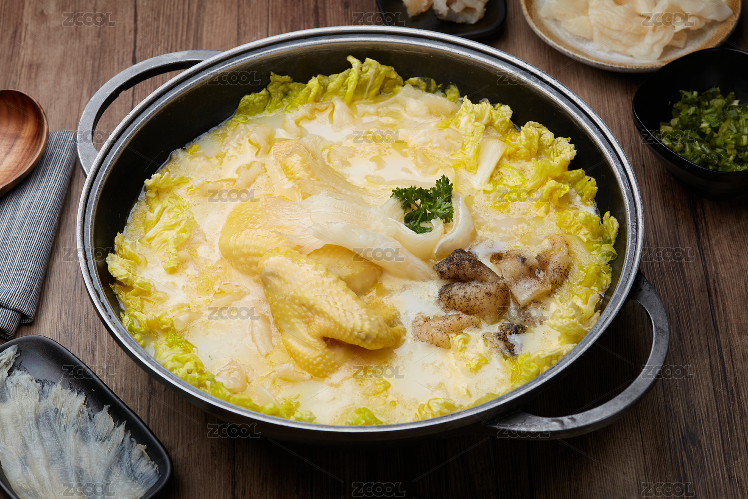 白色瓷汤盅装的浓汤鱼肚(花胶)