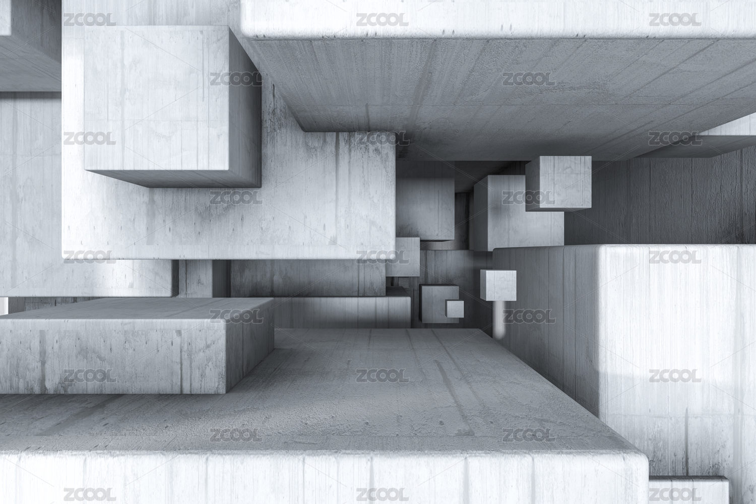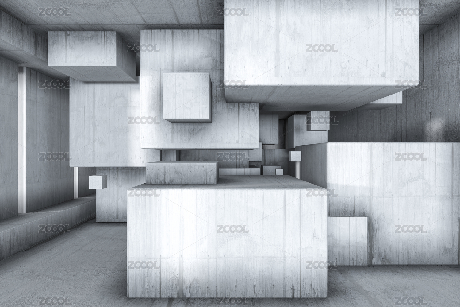 浅色创意感混凝土房间 三维渲染
