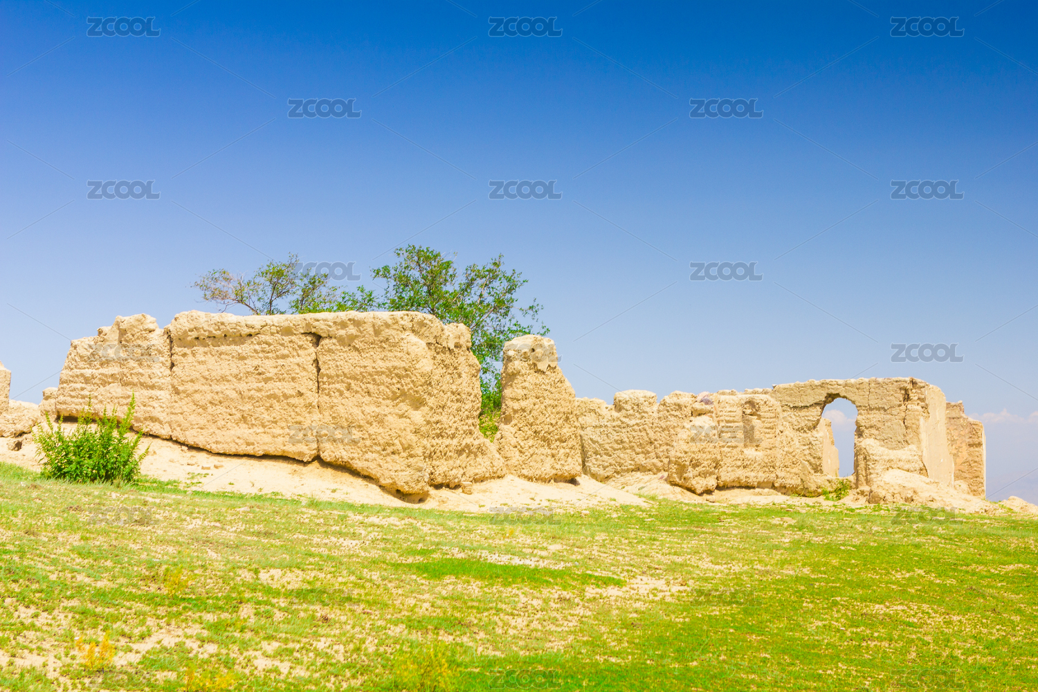 中国新疆巩留县草原上废弃的土房子