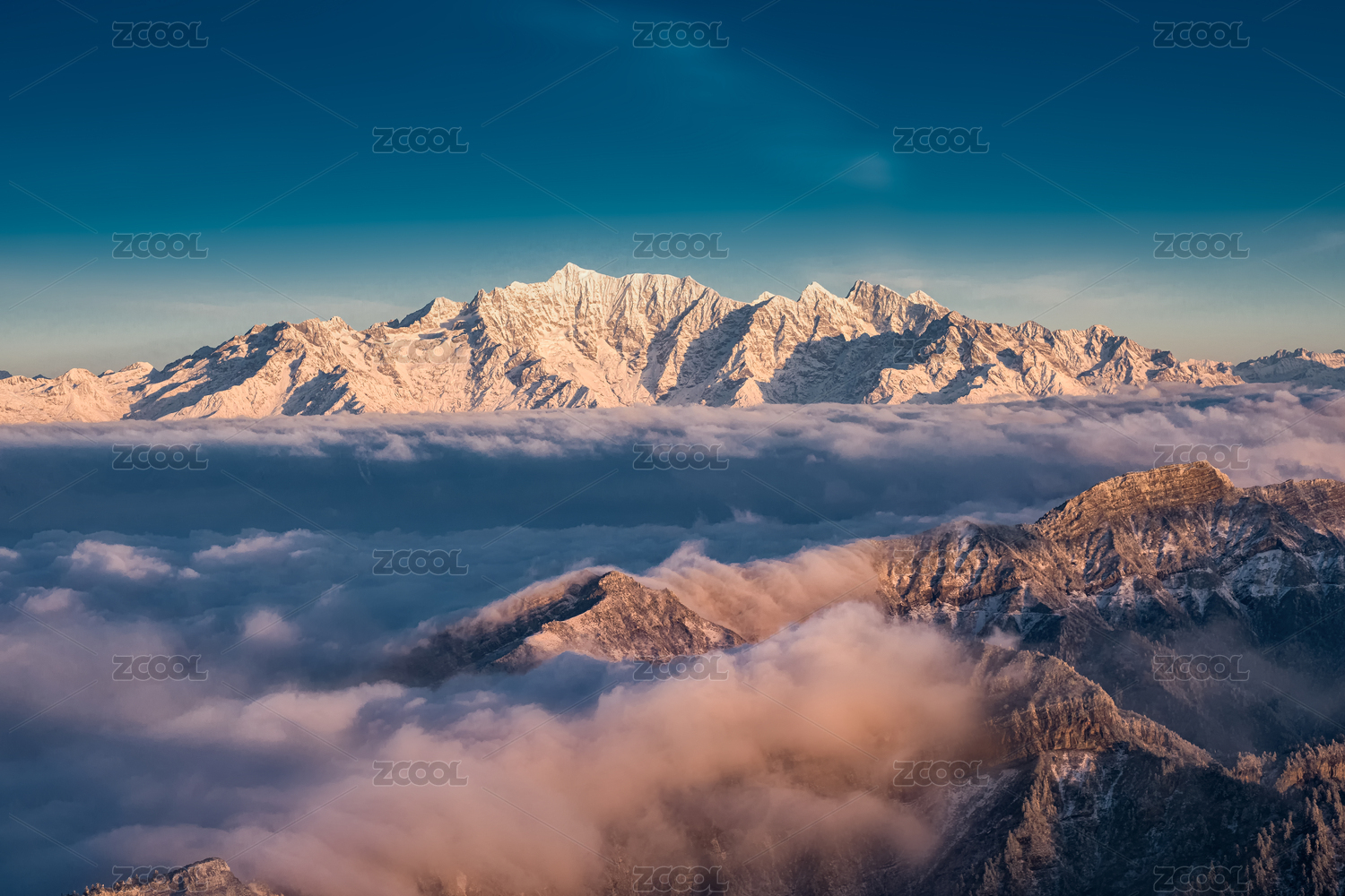 四川田海子山雪山云海全景