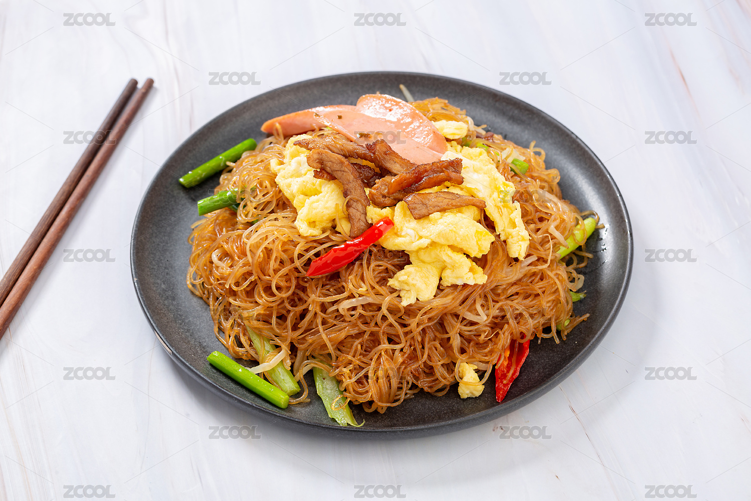 火腿鸡蛋肉丝炒米粉