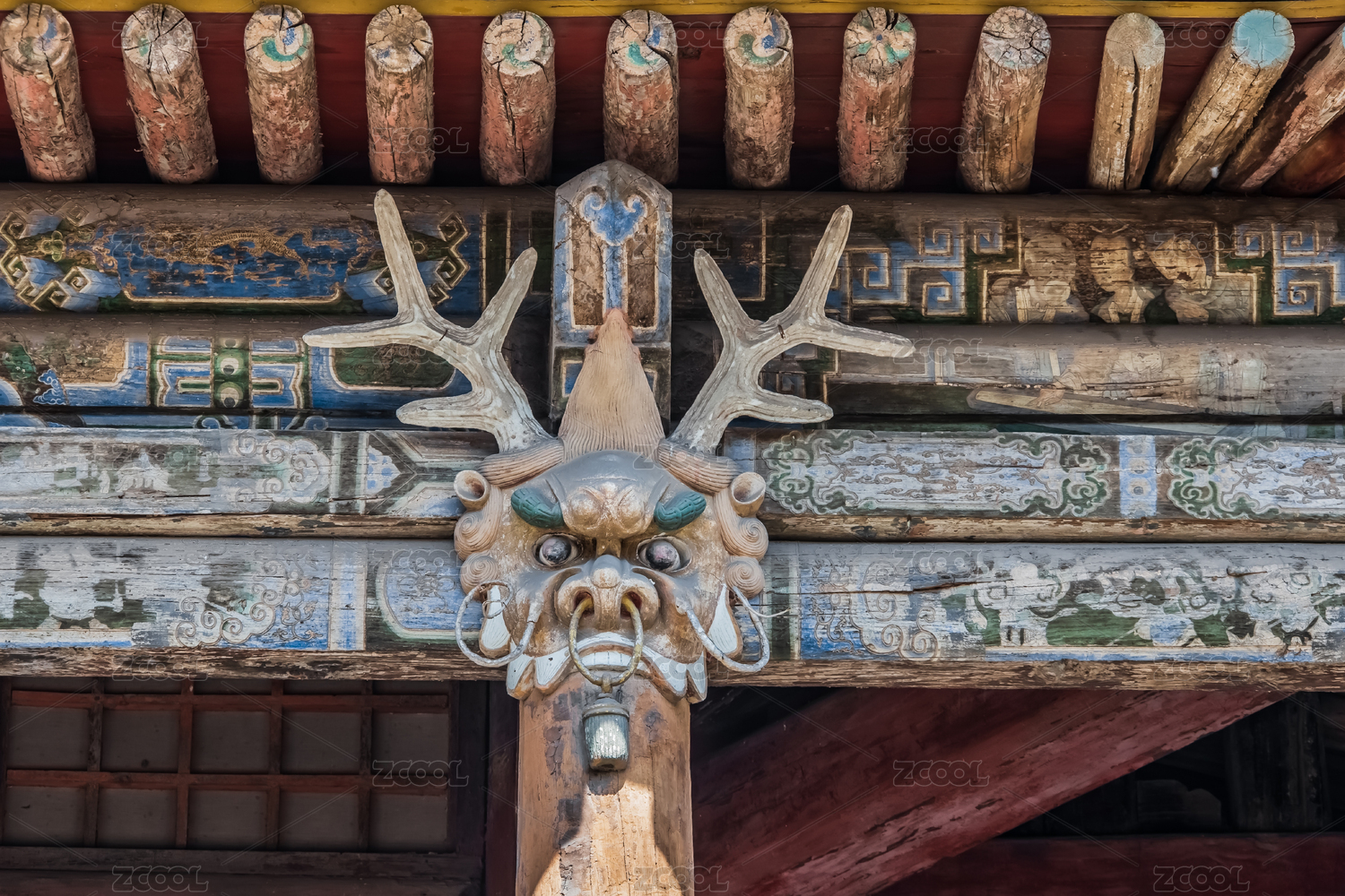 山西省大同市云冈石窟阁楼木雕龙头斗拱建筑