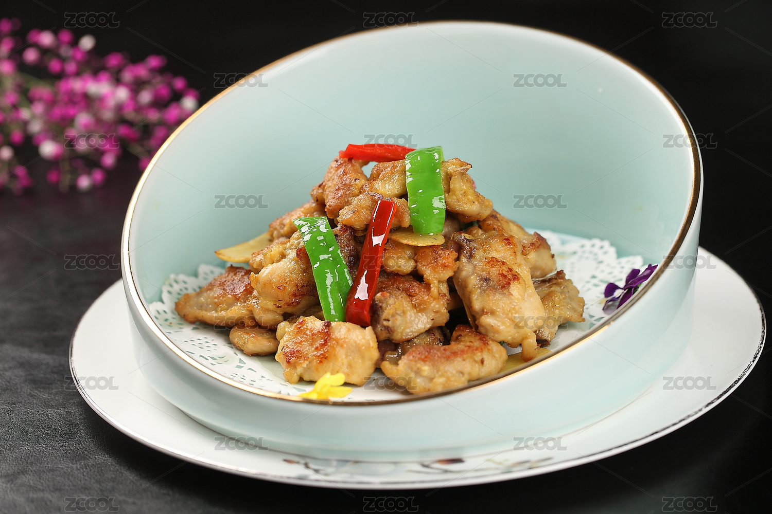 特写锅子里翻炒刚煎好的嫩煎鸡肉块