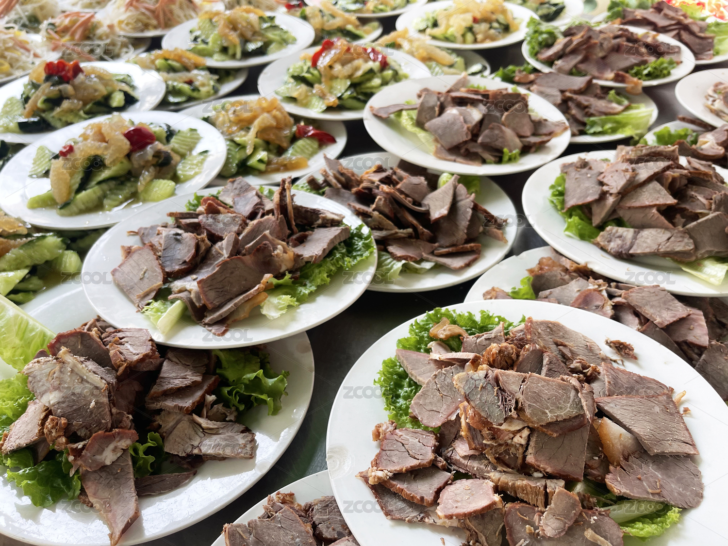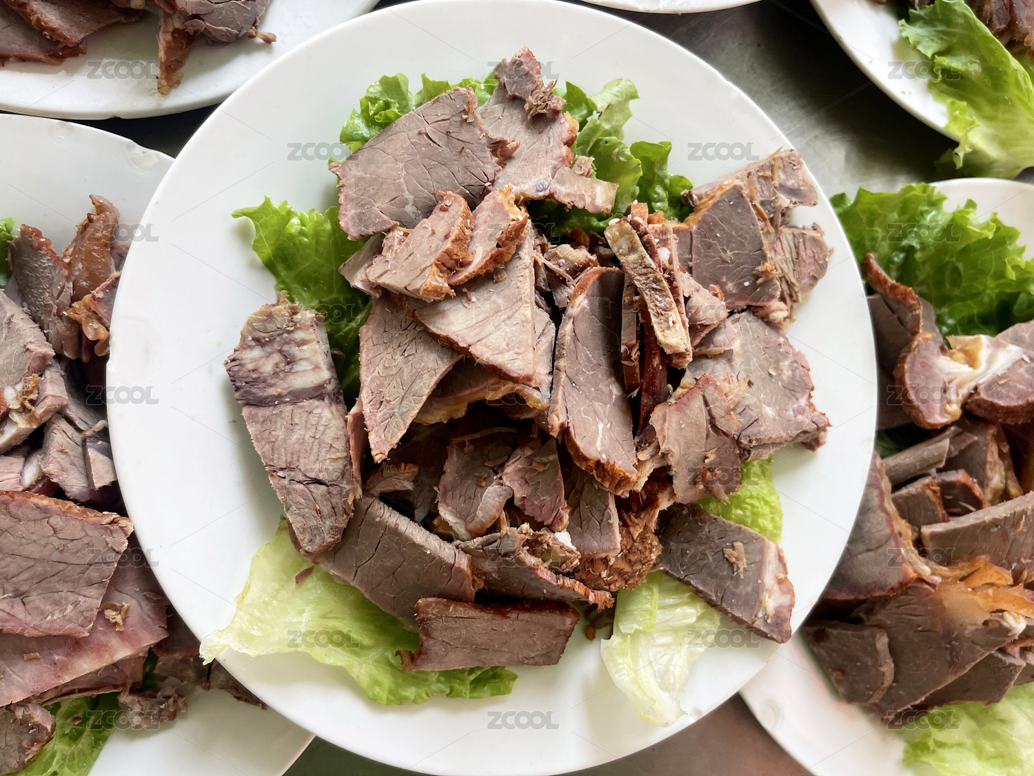 烹饪好的牛肉在盘子盘子里熟的菲力