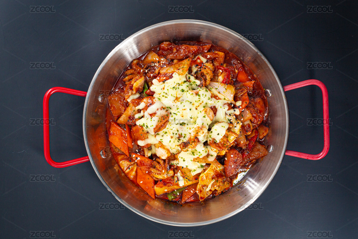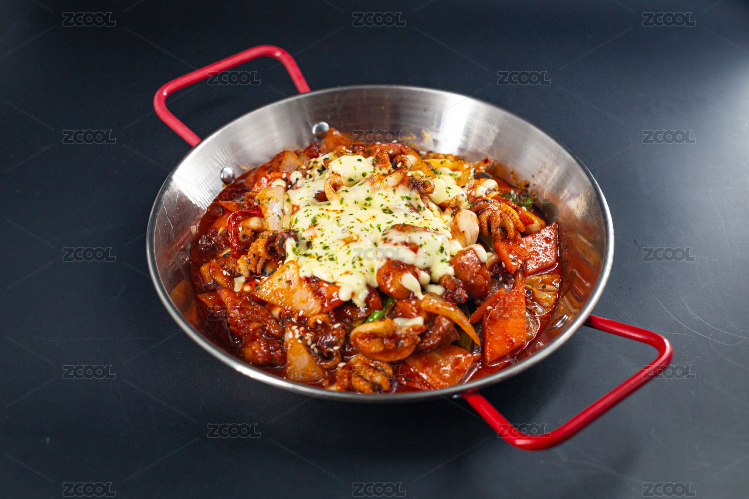 放在锅里的韩国料理鸡肉炒年糕