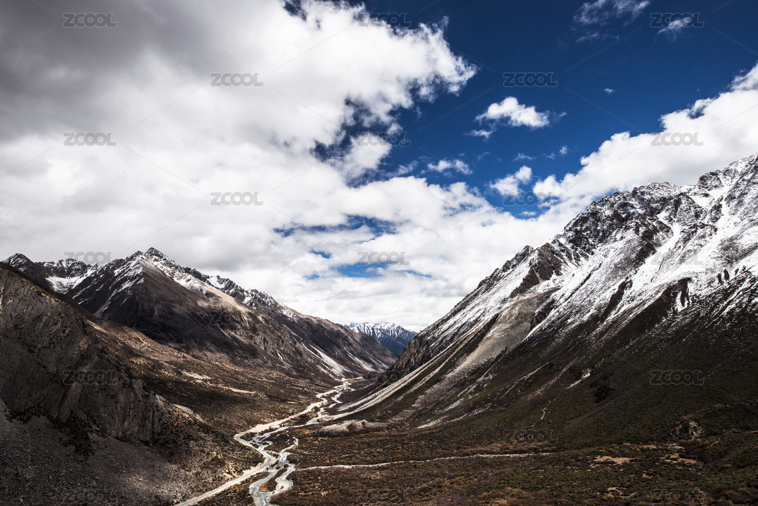 中国四川甘孜亚拉雪山下的农场和雪山风光