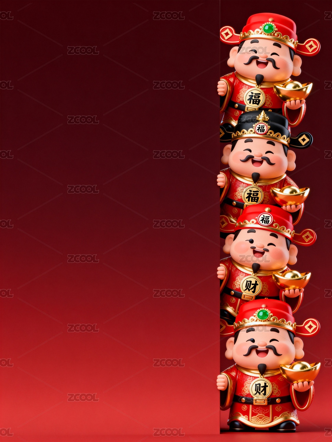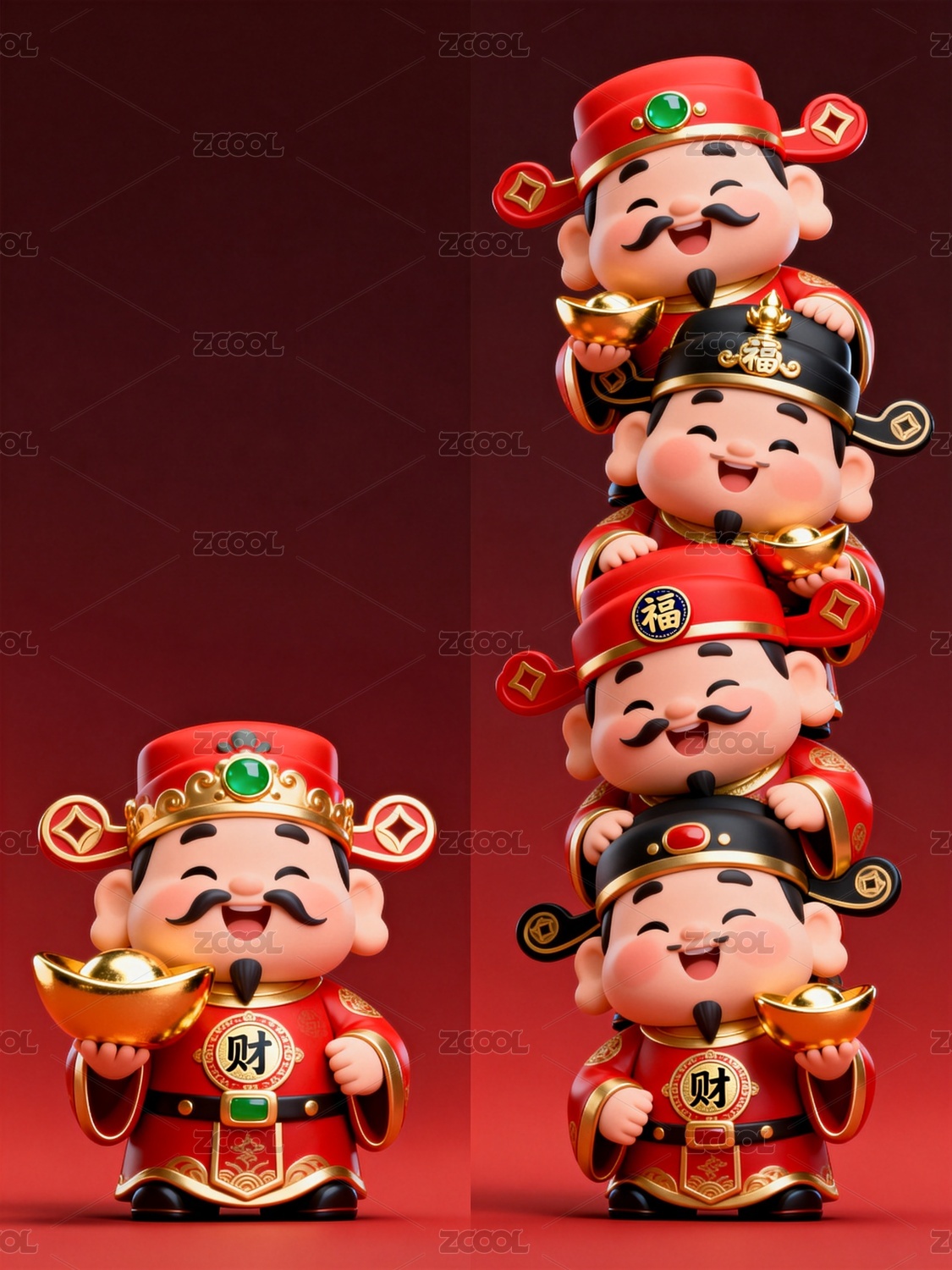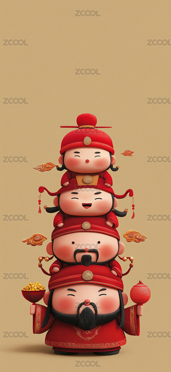财神堆叠吉祥风格画面呈现