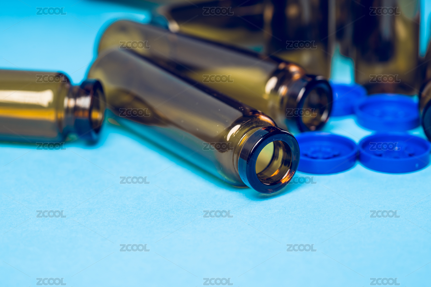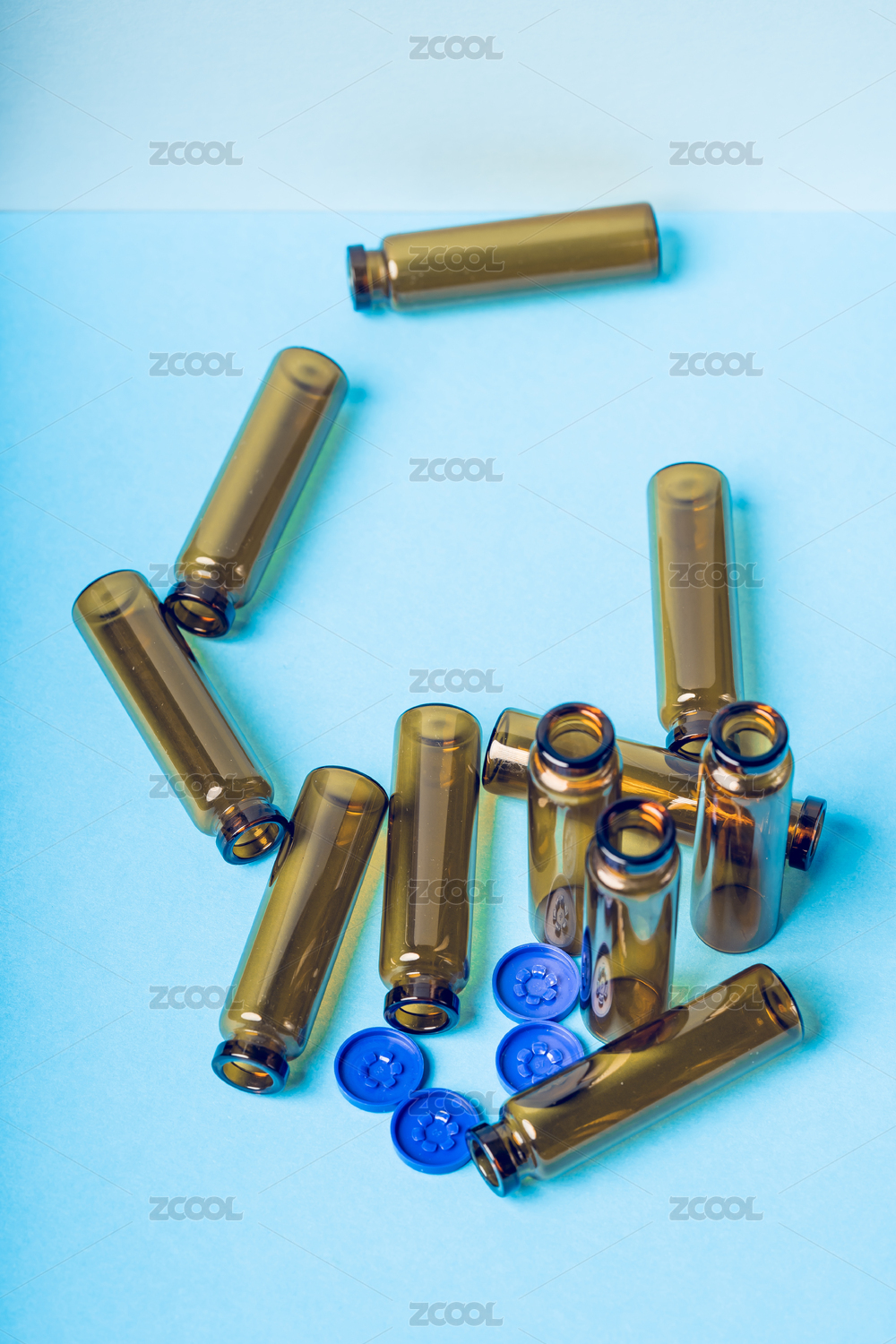 纯色背景下的口服液玻璃瓶