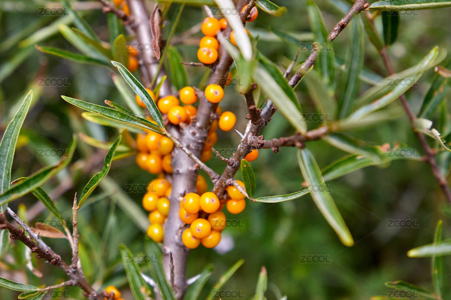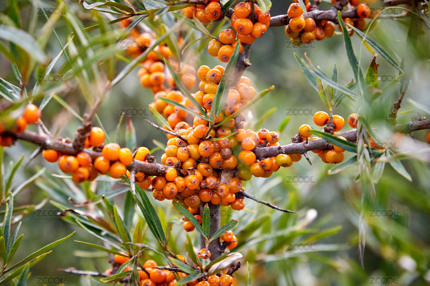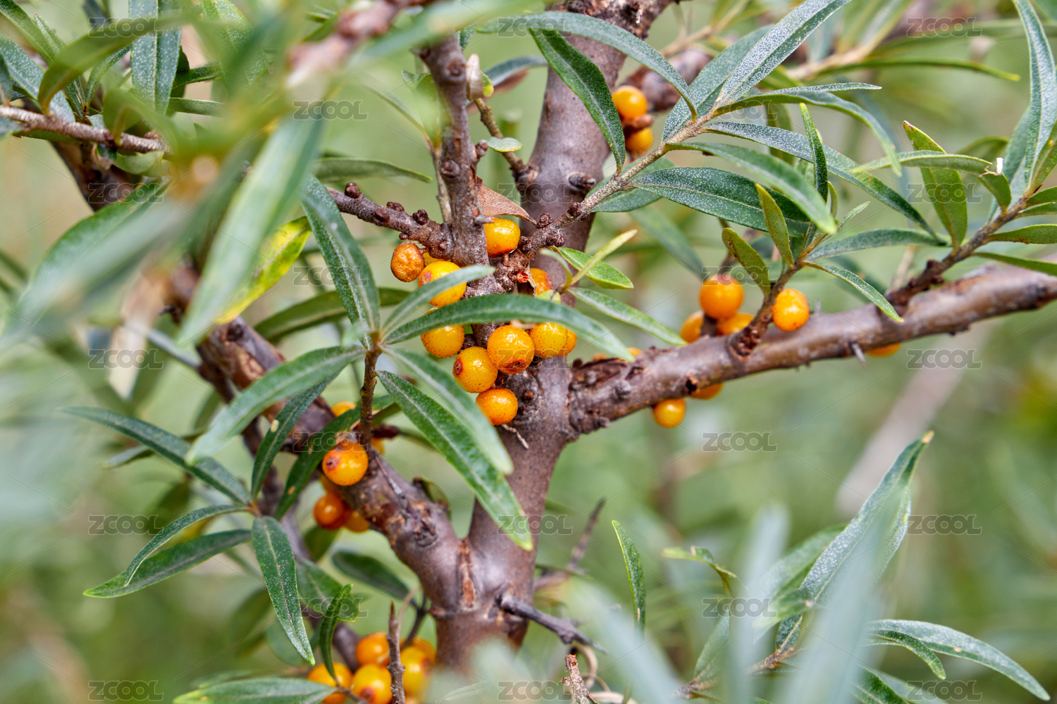 秋季西北野外地区耐旱灌木野生沙棘的黄色果实