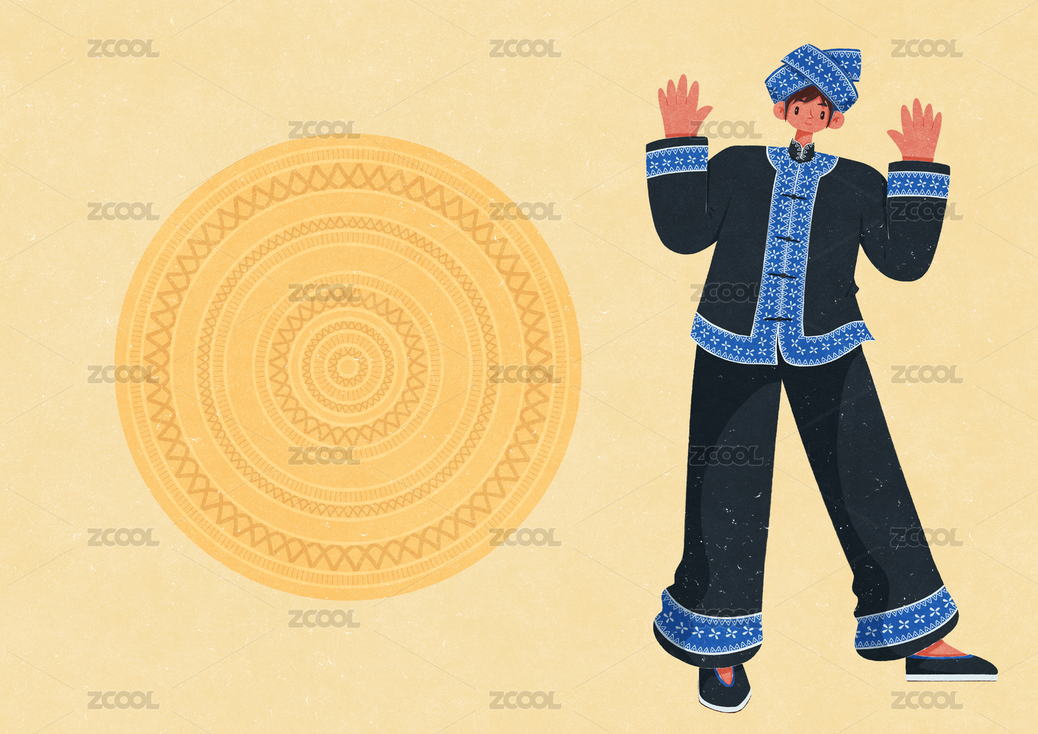 中国五十六个民族毛南族花竹帽少女盛装女性服饰插画