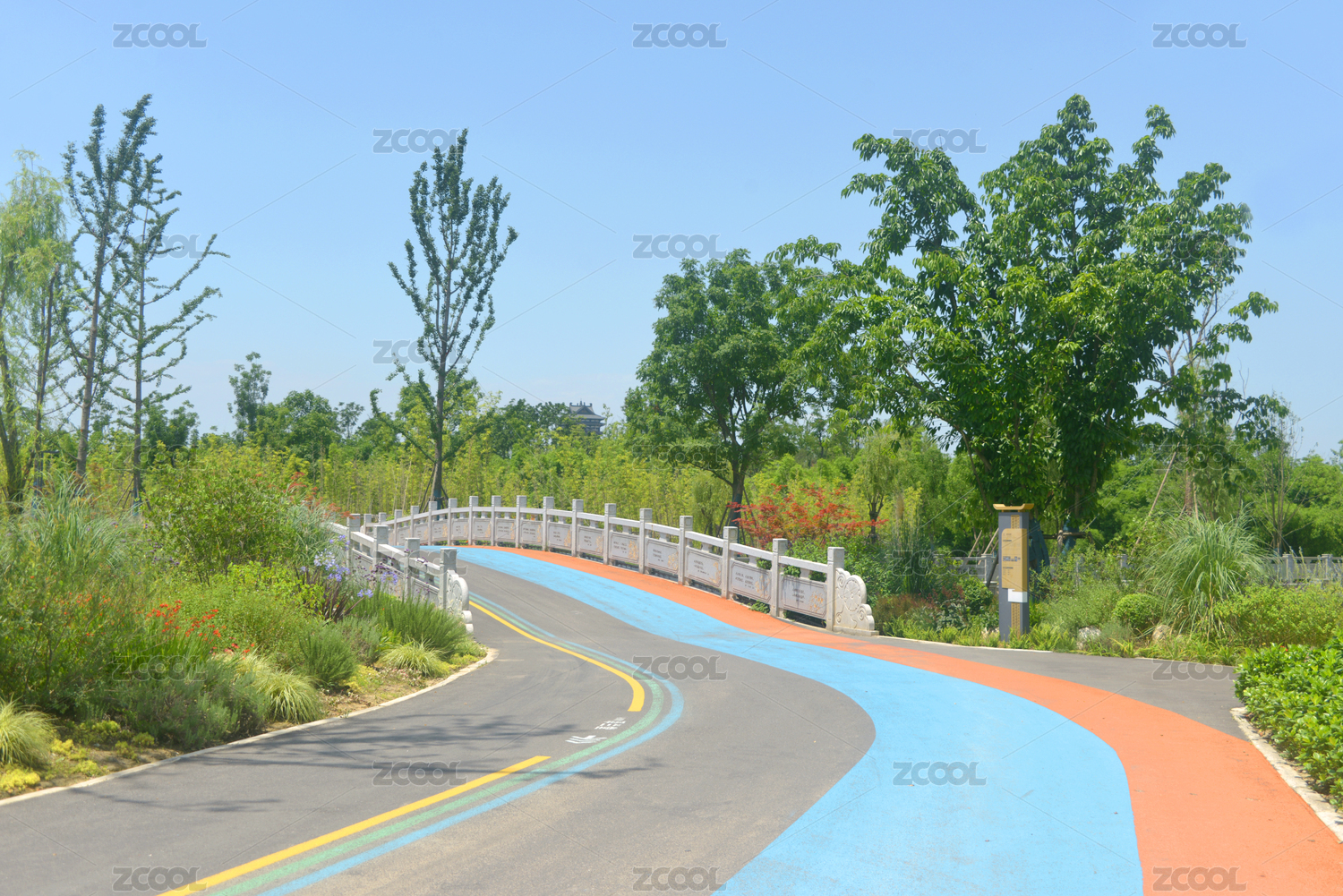 中国四川成都龙泉驿驿马河公园健身彩道及风诗桥