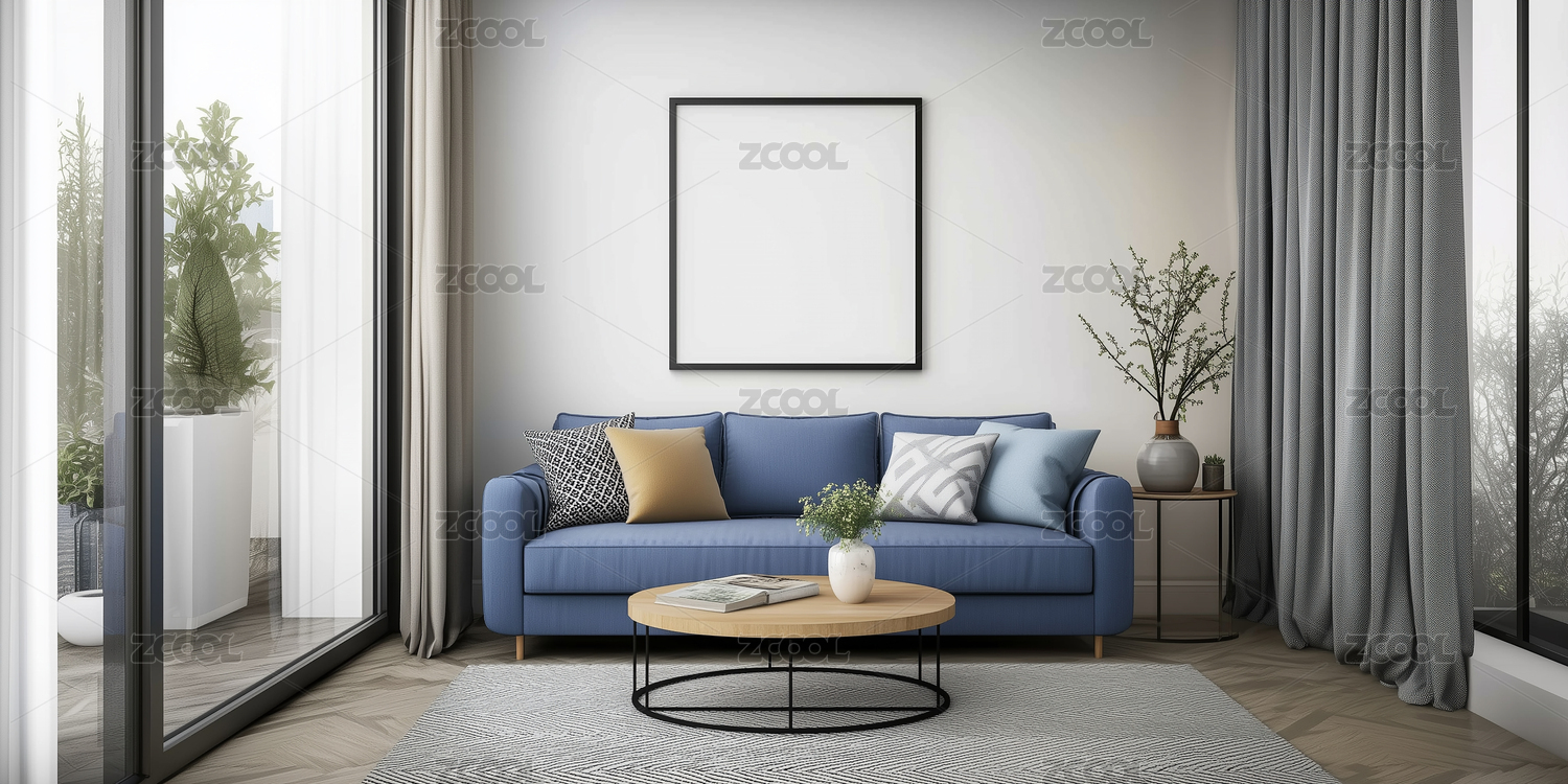 白色木质边框画框现代风格室内环境