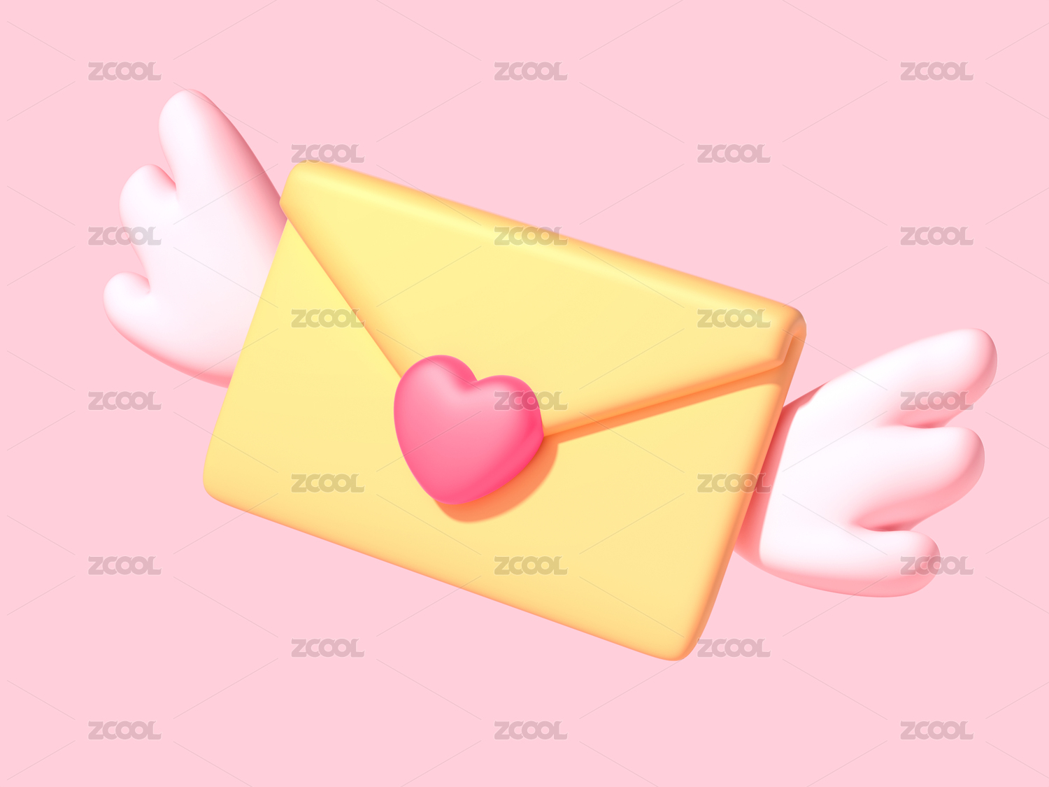 Be my Love 520情人节七夕带翅膀信封3D风格PNG免抠