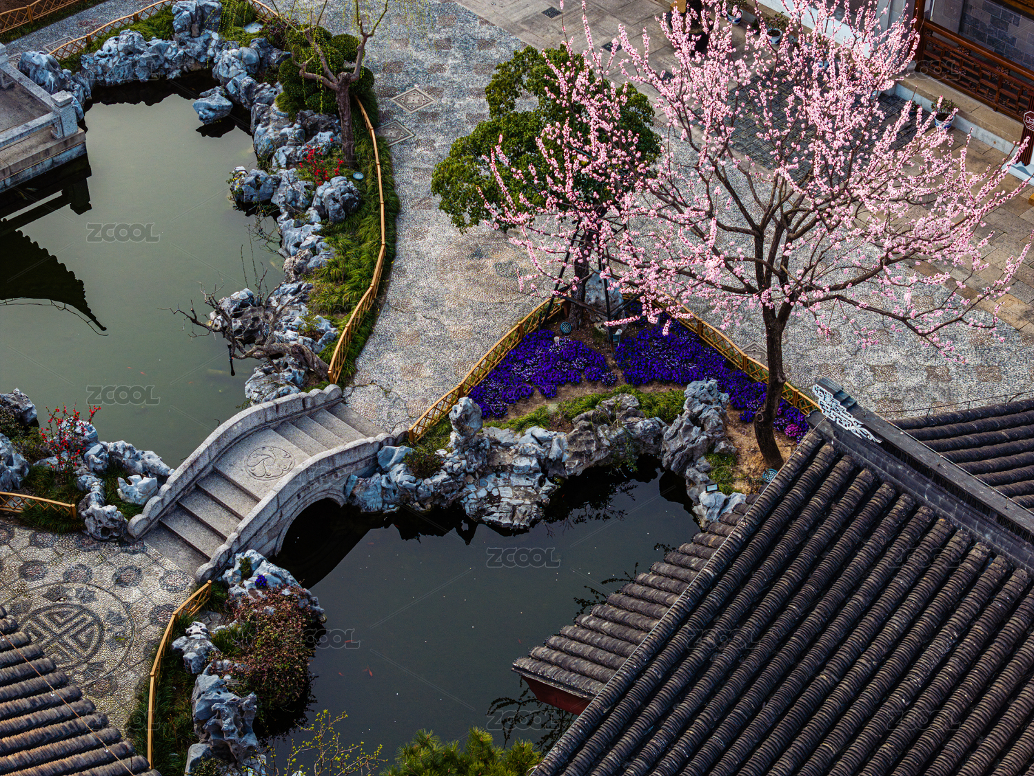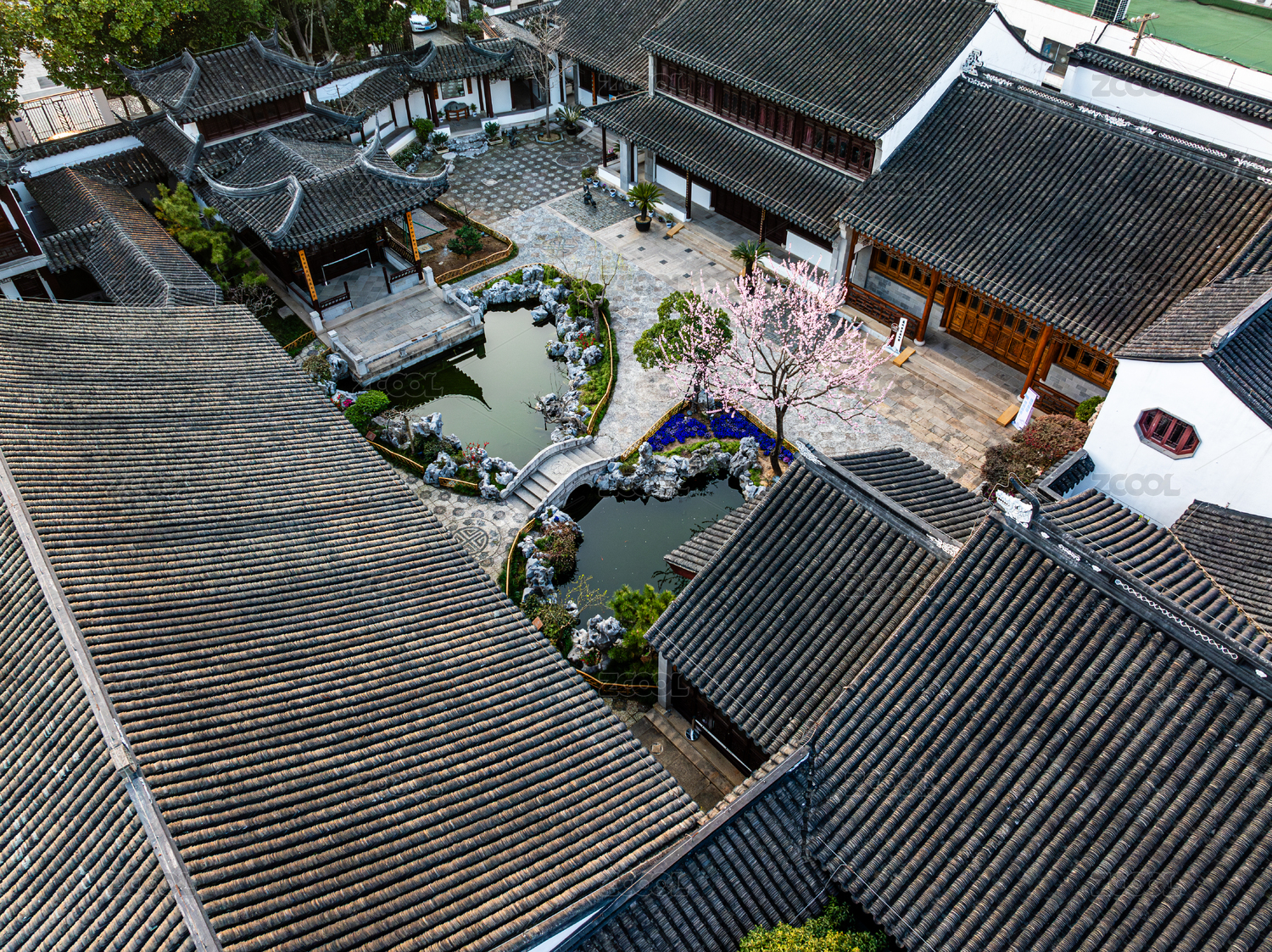 中国江苏苏州柴园航拍春天花开