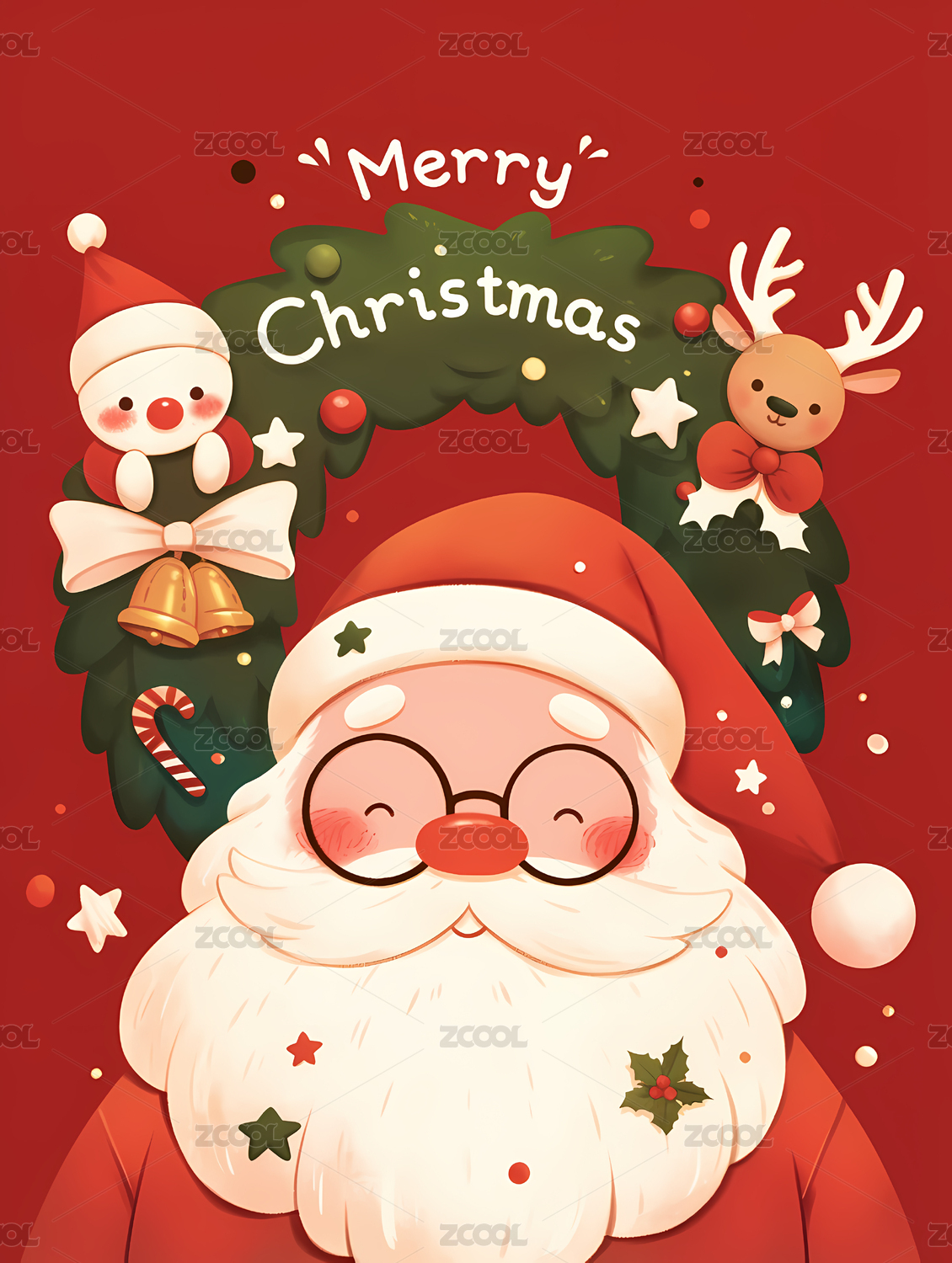 可爱的花环圣诞老人