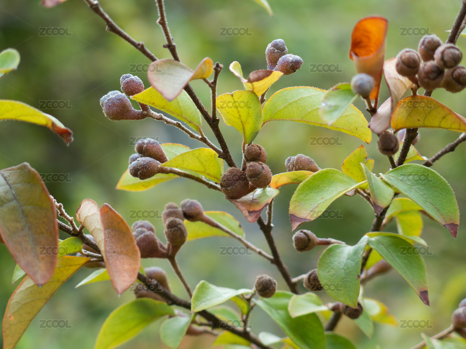 檵木树枝和褐色的蒴果