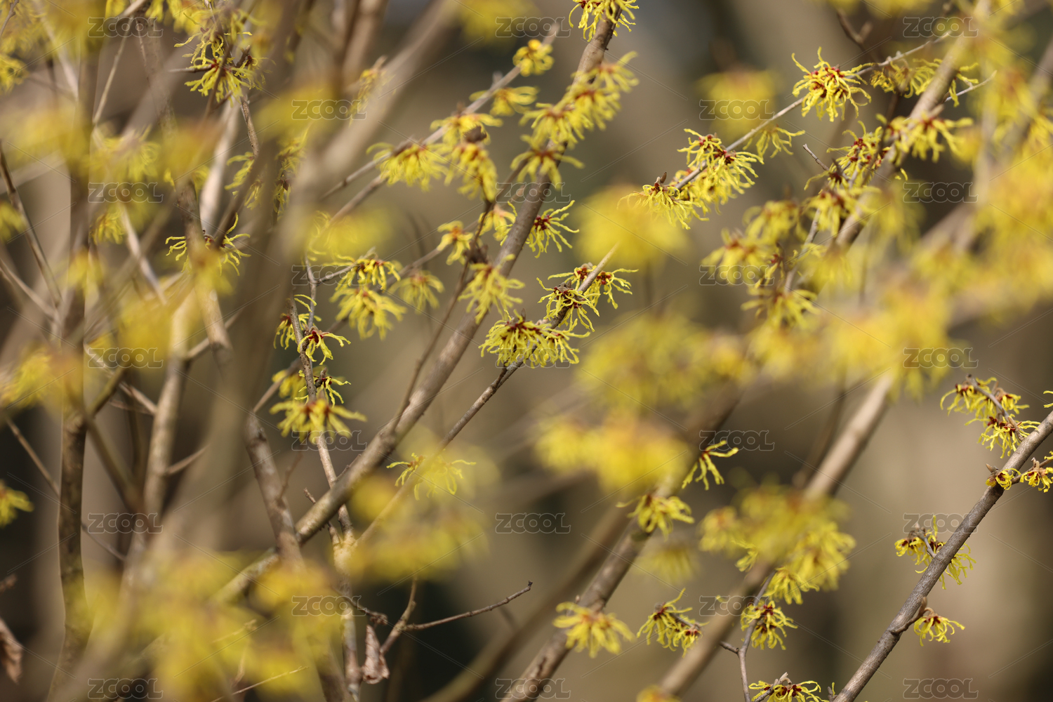 早春开黄花的流苏状金缕梅