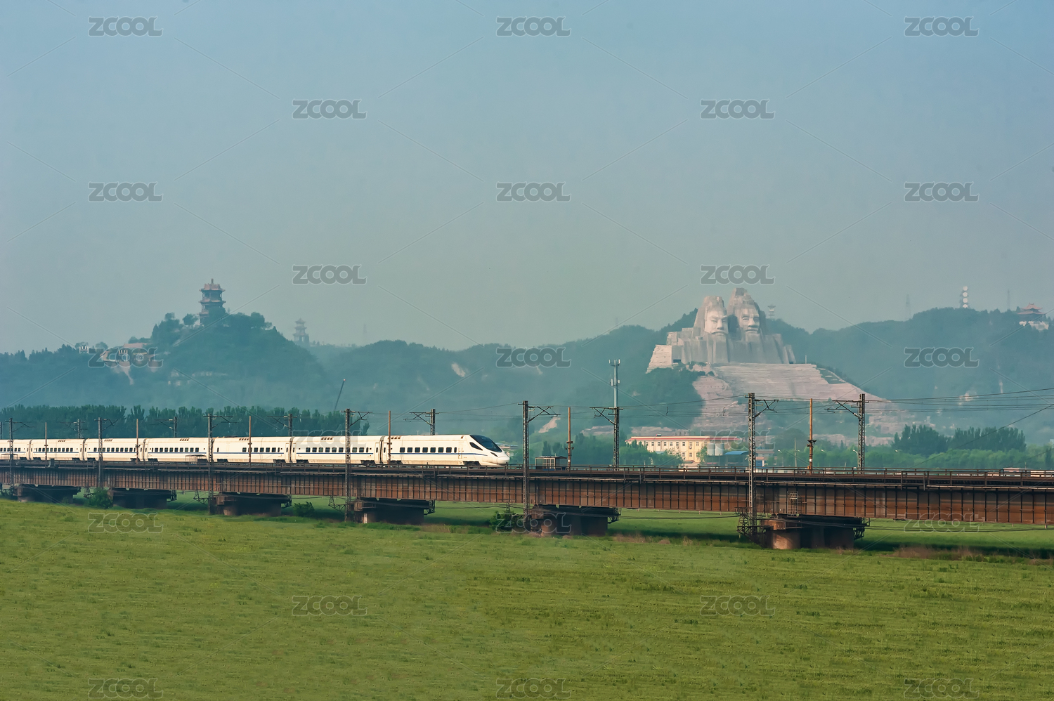 穿过炎黄二帝雕像的跨黄河高铁桥
