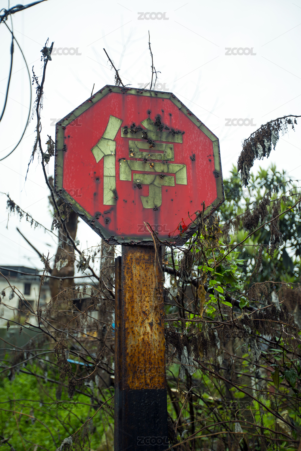 一个人拿着一个红色圆形禁止标识交通指示牌手里展示着标识警醒警告提示提醒概念