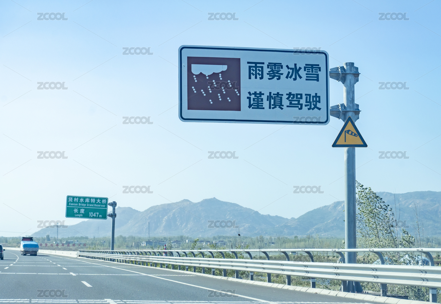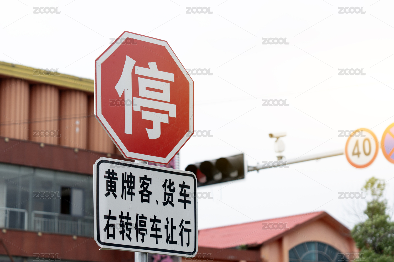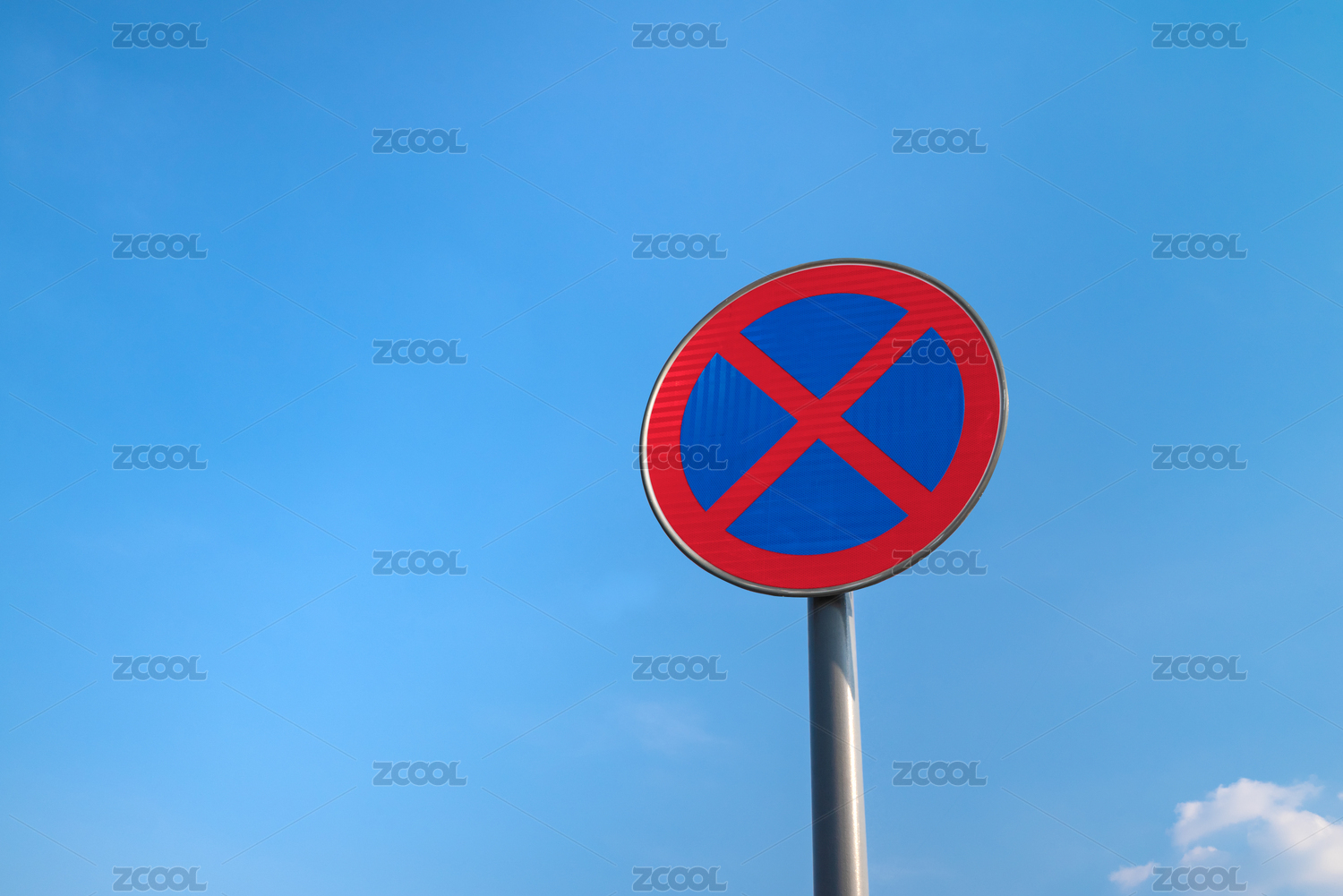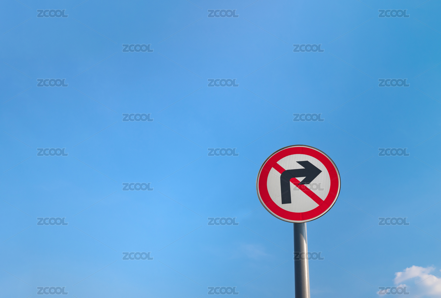 蓝天白云下的交通标志警示标识禁止转弯右转