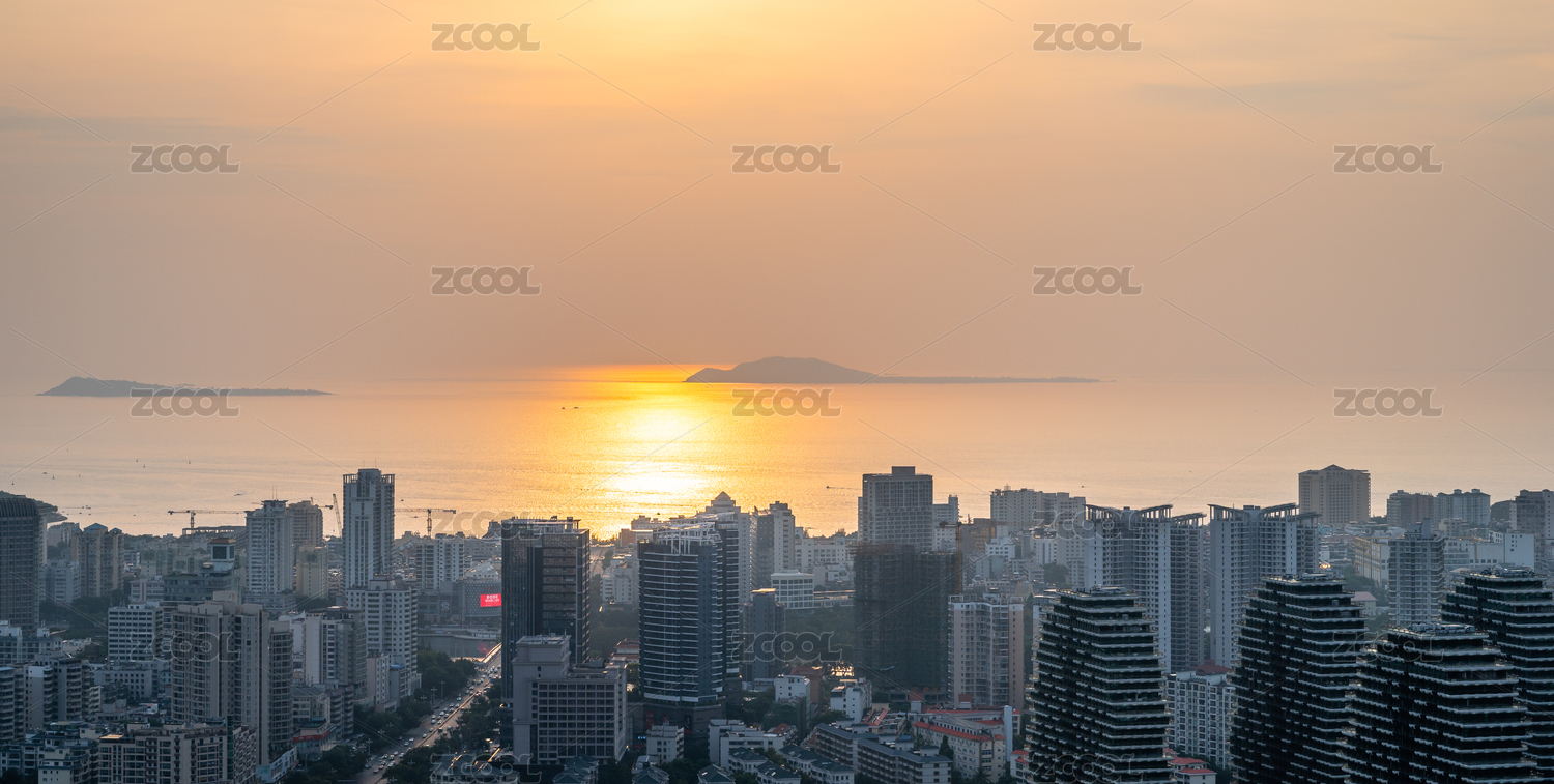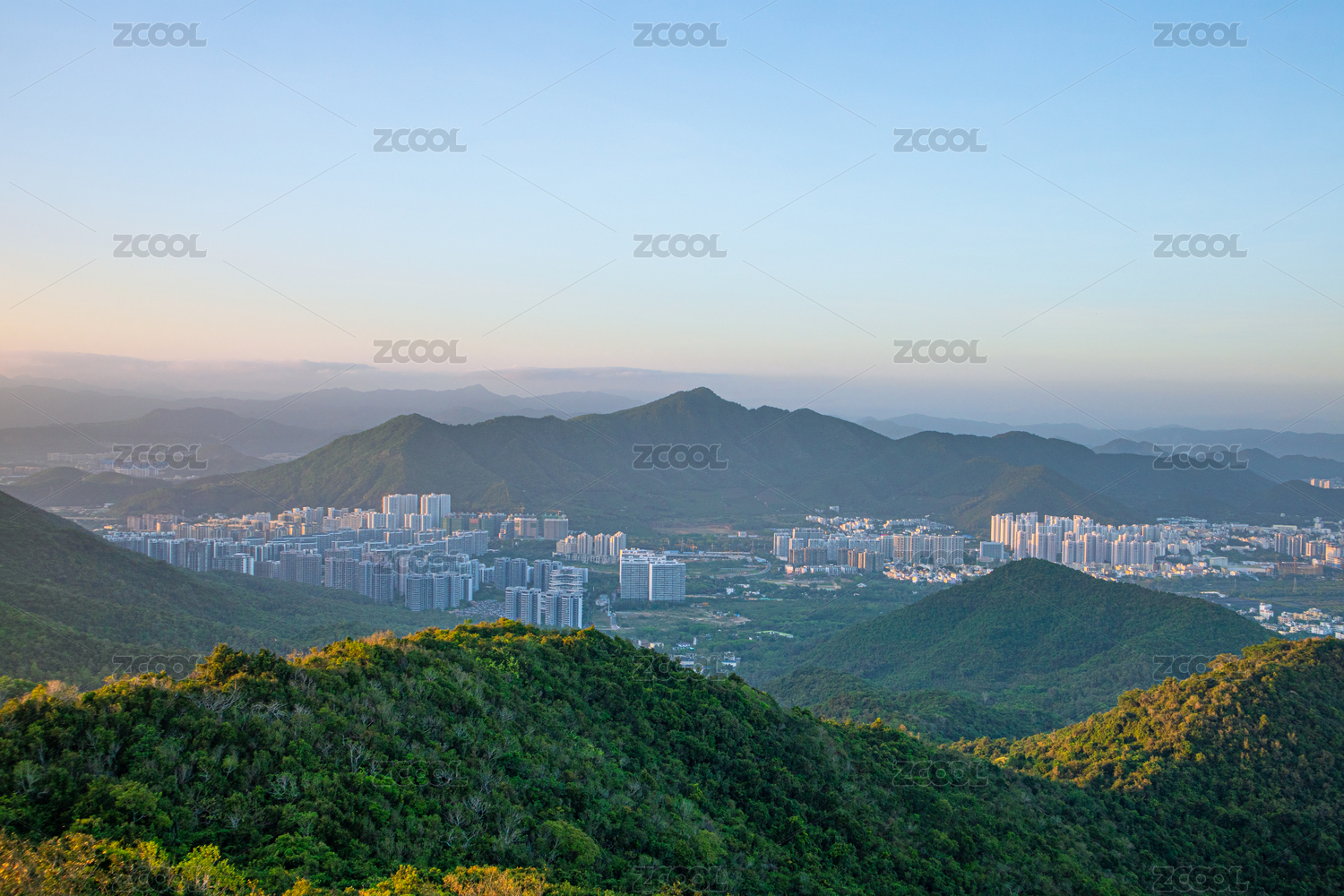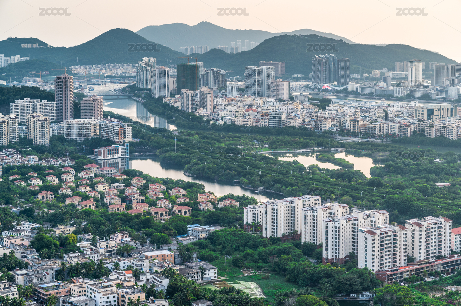 海南三亚临春岭森林公园山顶俯瞰海岸城市
